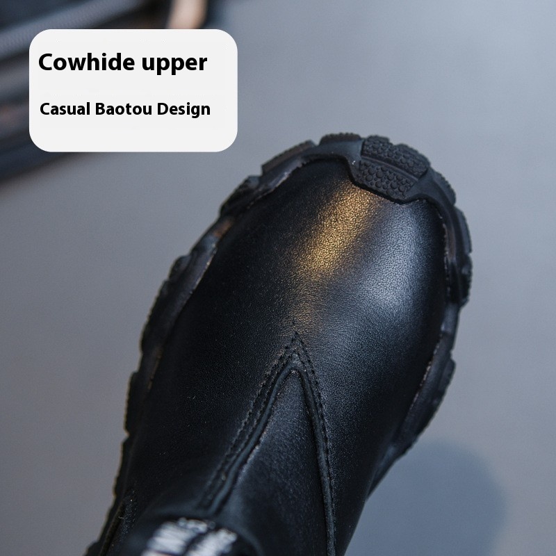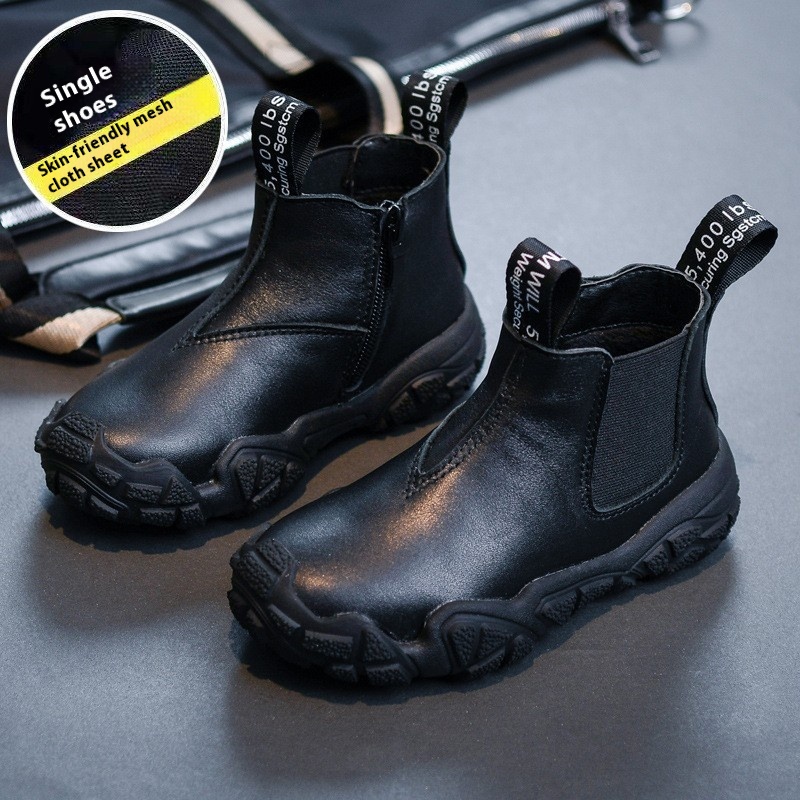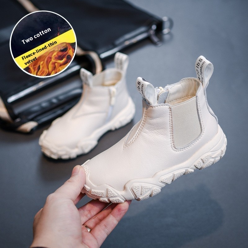 Boys Martin Boots Autumn And Winter Cowhide Children's Short Boots Plus Velvet And Cotton Baby Snow Cotton Boots Girls