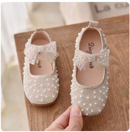 Autumn Korean Version Girls Princess Shoes Spring And Autumn Children's Dance Round Head Crystal Leather Shoes Soft Bottom Single Shoes