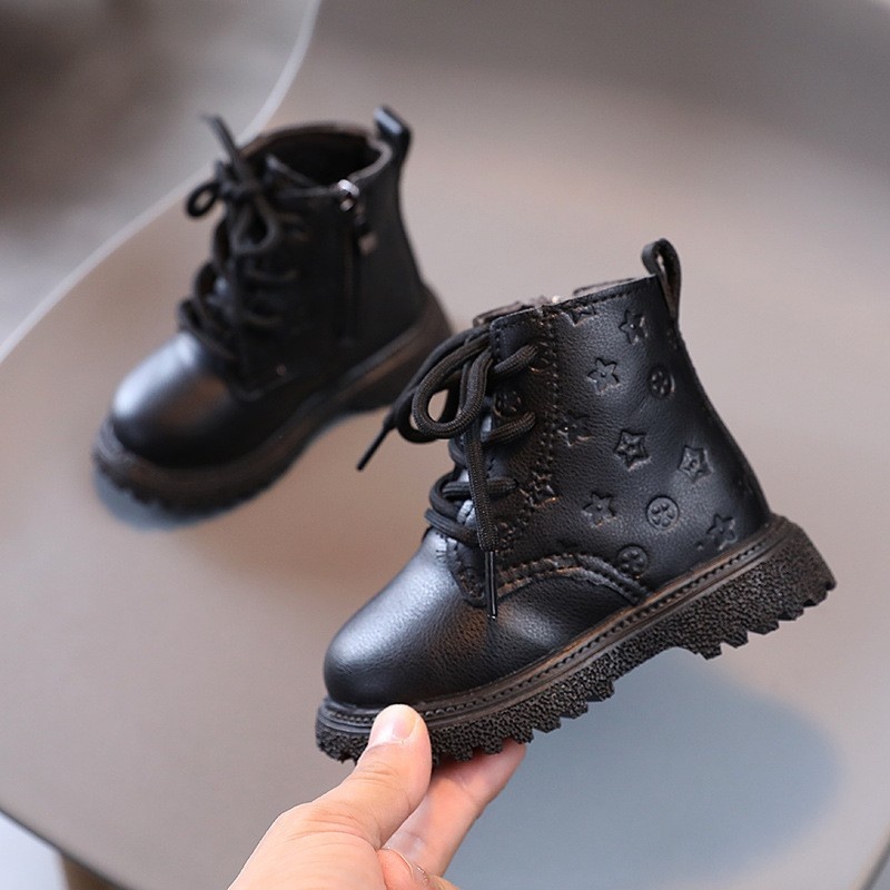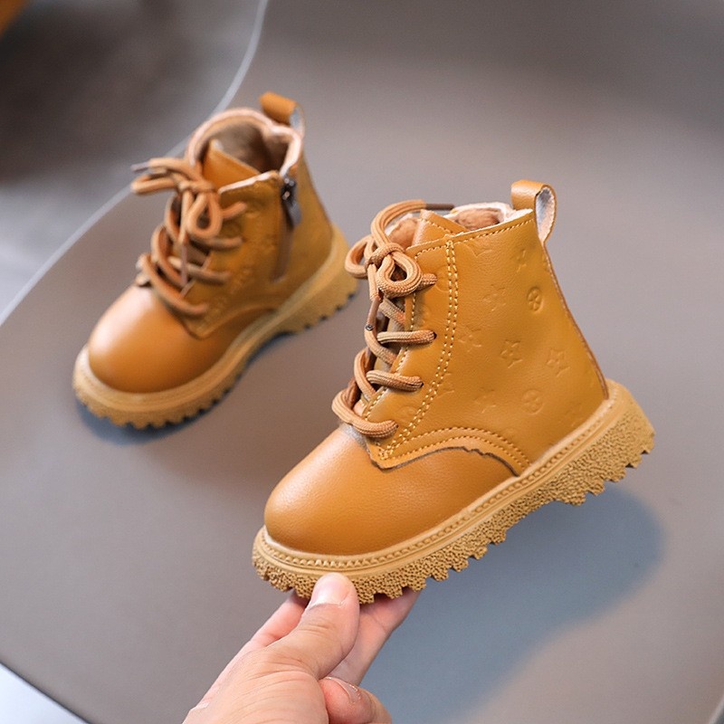 Boys Martin Boots Autumn And Winter Cowhide Children's Short Boots Plus Velvet And Cotton Baby Snow Cotton Boots Girls