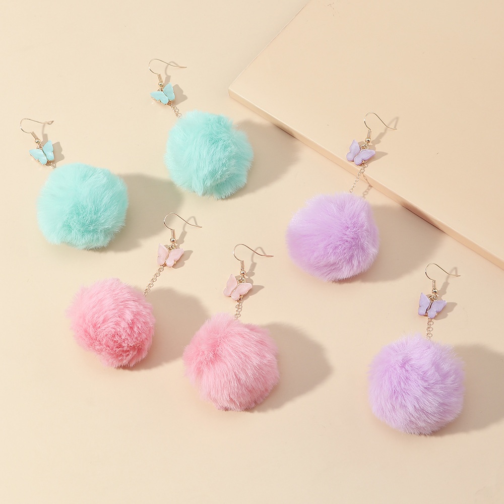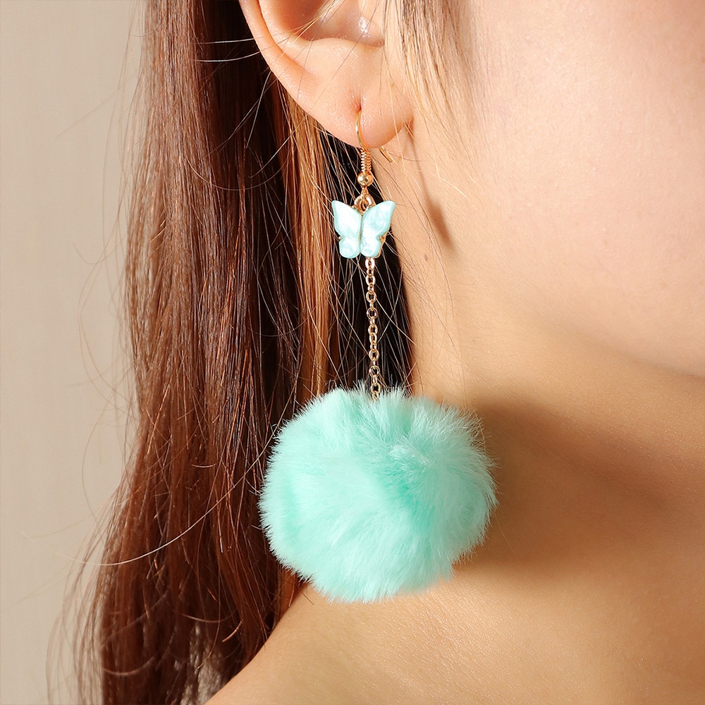 Women's Earrings Butterfly Pendant Mink Fur Plush Accessories Women's Earrings Creative European And American Autumn And Winter Earrings