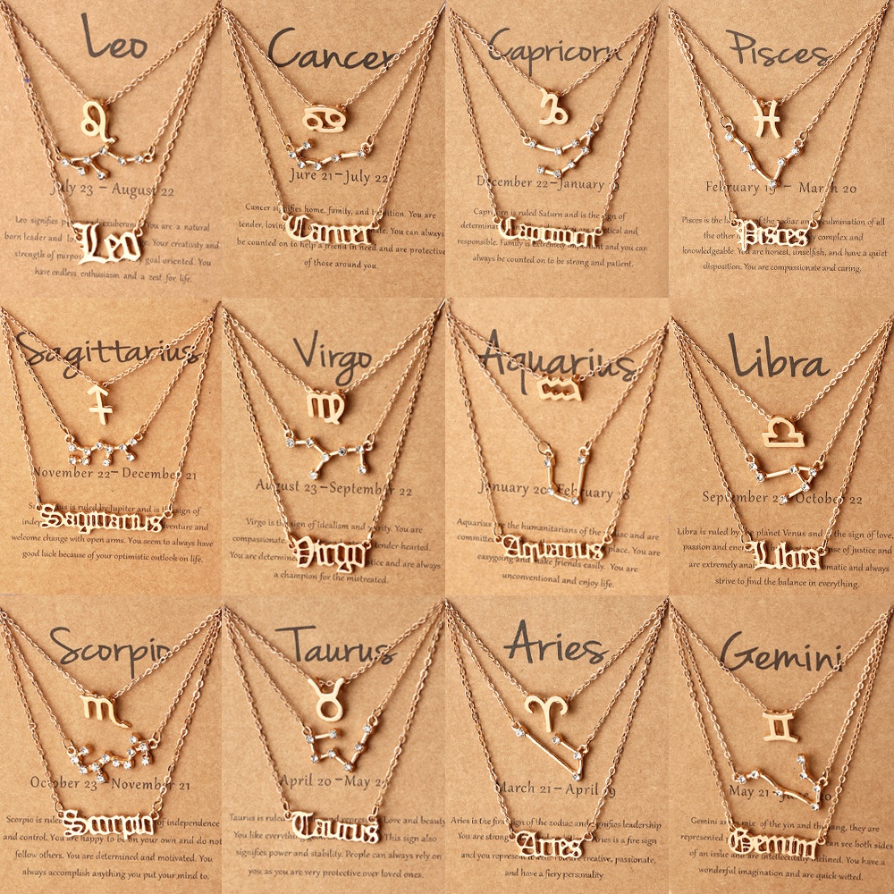 NZ2422 European And American Twelve Constellation Necklace Three-Piece Constellation Necklace Set Paper Card Pendant Necklace