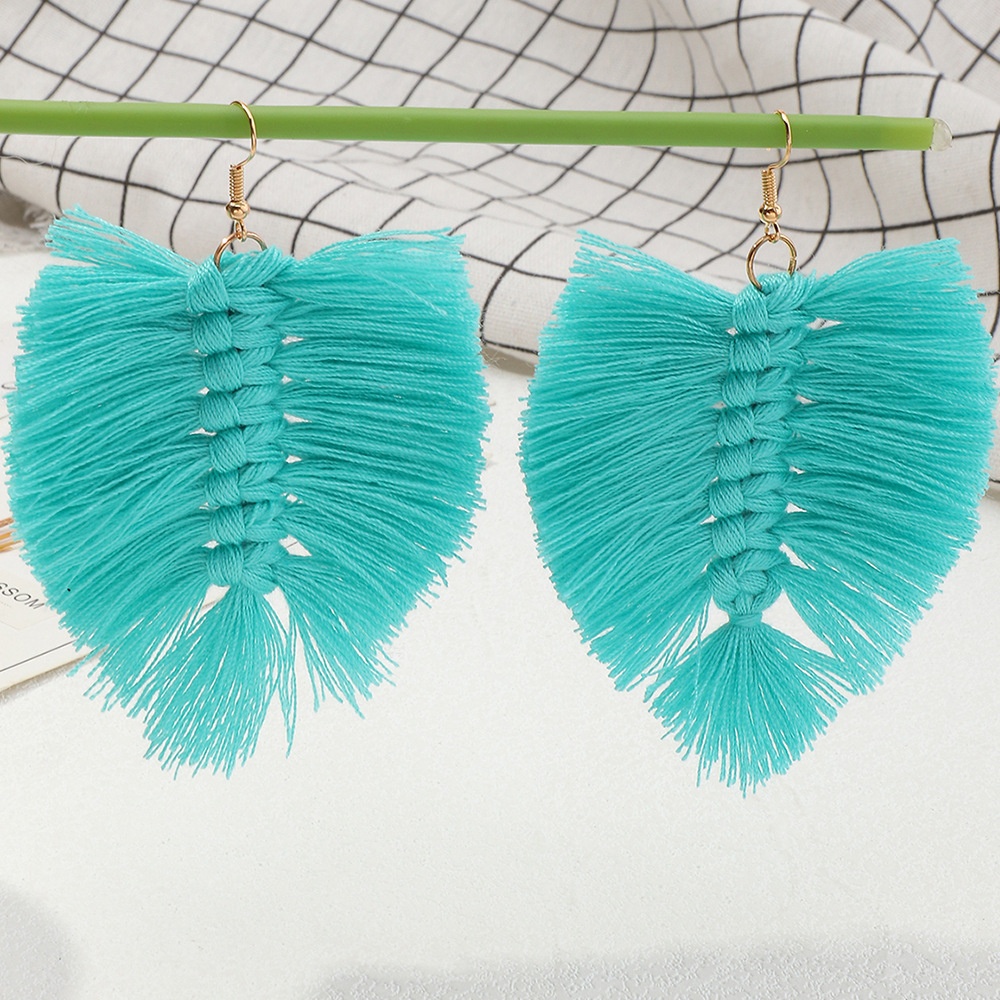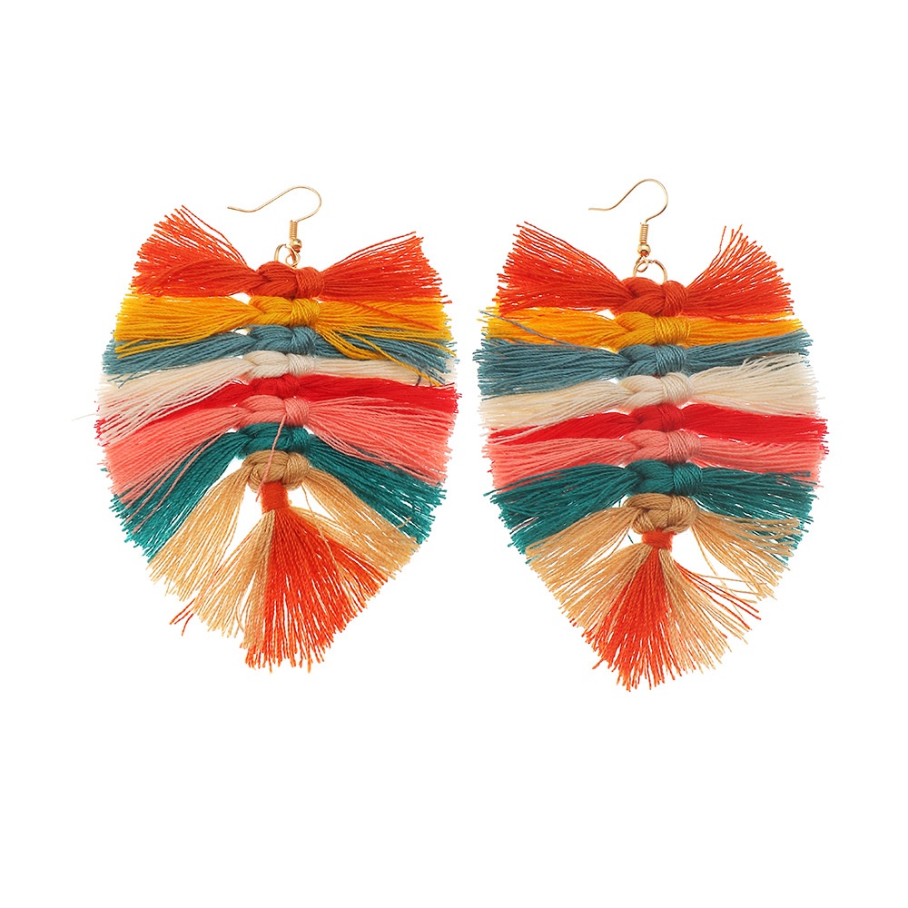 EZ3627 Jewelry Bohemian Style Handmade Woven Leaf Tassel Earrings Earrings For Women