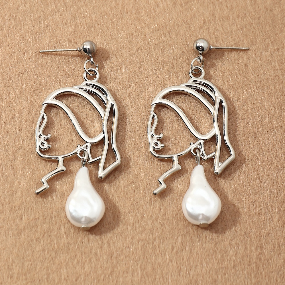 EZ3700 Pearl European And American Hollow Alloy Girl Earrings With Pearl Earrings Female Retro Design Earrings