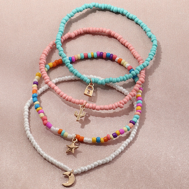 FZ0172 European And American Jewelry Cute All-match Star Moon Pendant Temperament Colorful Rice Bead Anklet