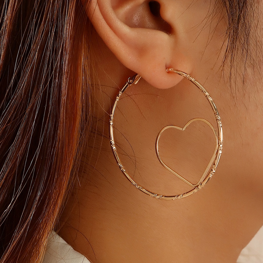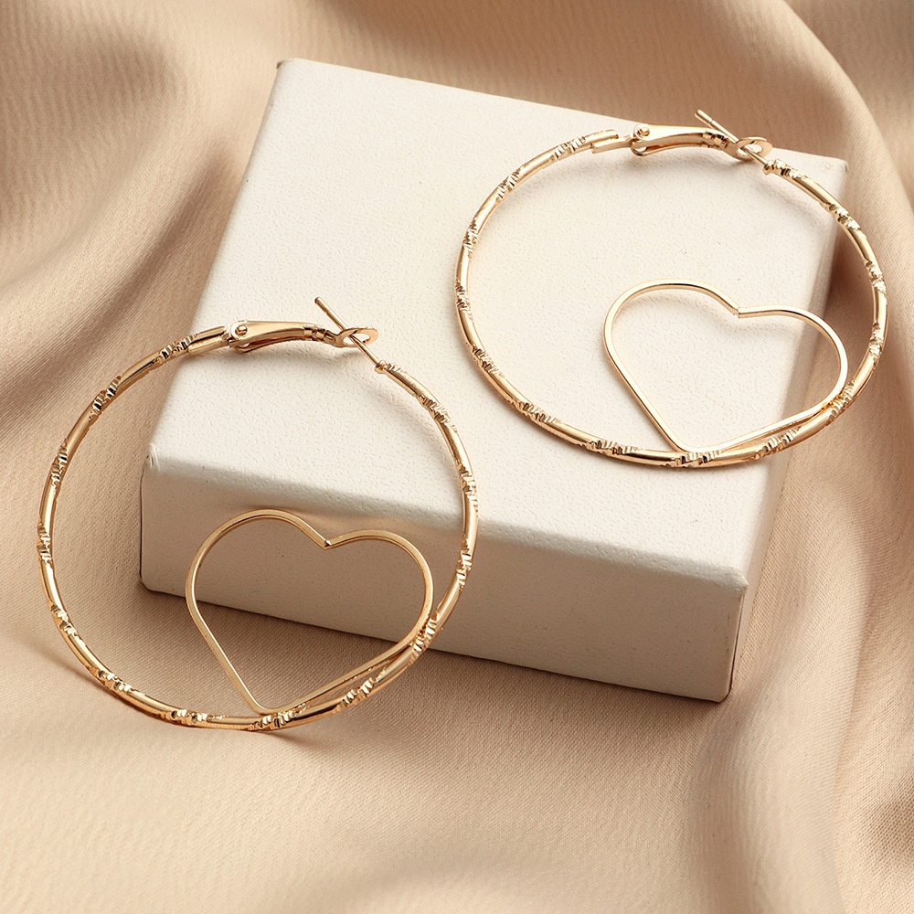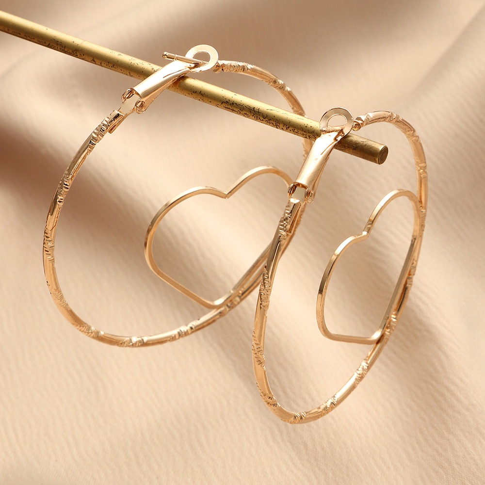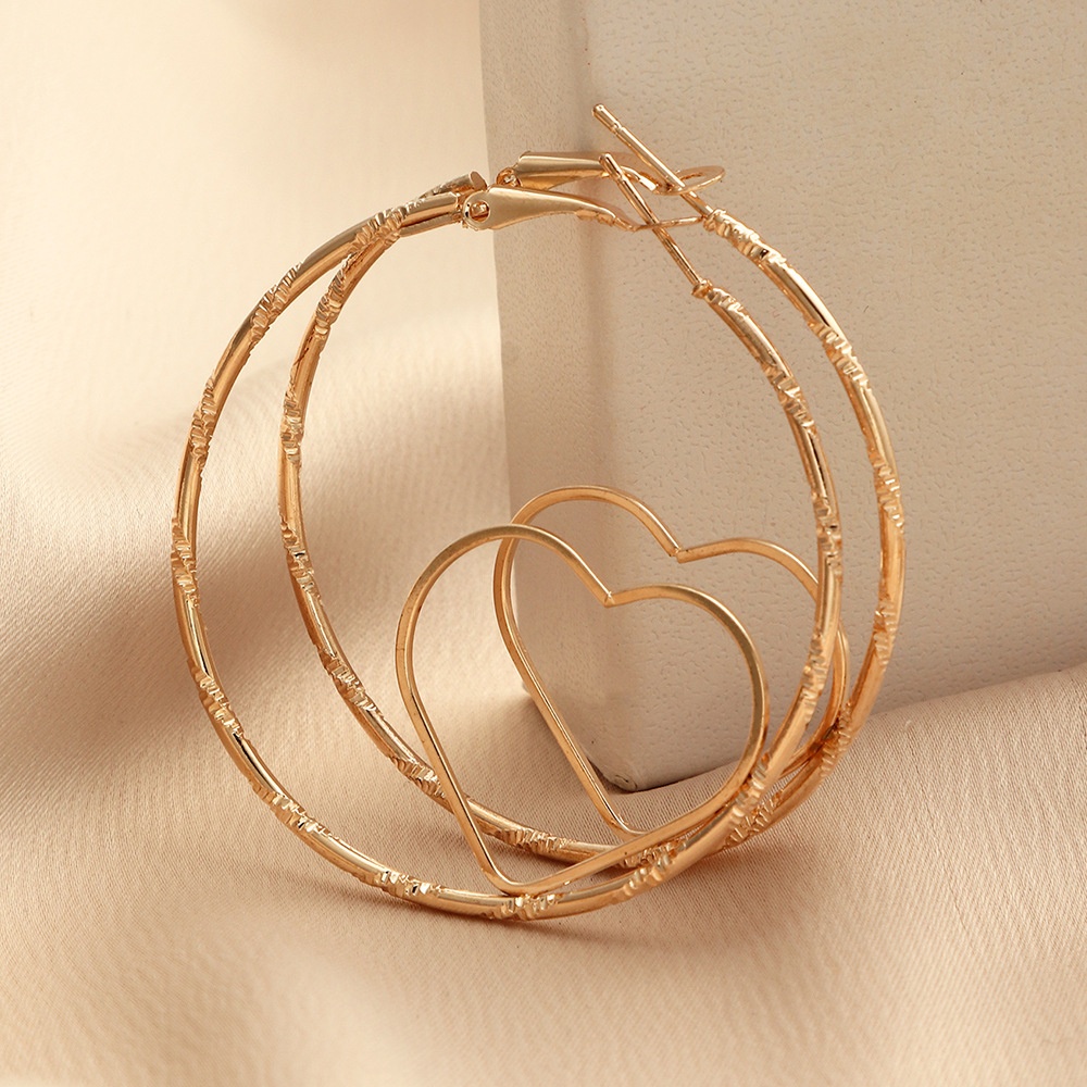 EZ4053 European And American Style Simple Exaggerated Personality Alloy Earrings Peach Heart-shaped Atmospheric Net Celebrity Female Earrings