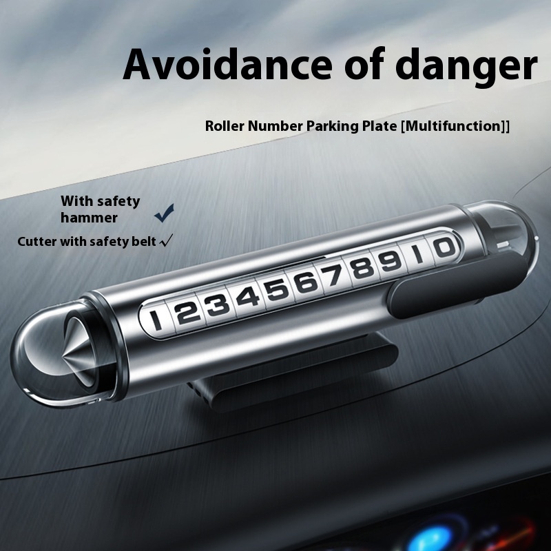 Car Temporary Parking Sign Safety Hammer Hidden Roller Adjustment Number Multi-function Escape Window Breaker Number Plate