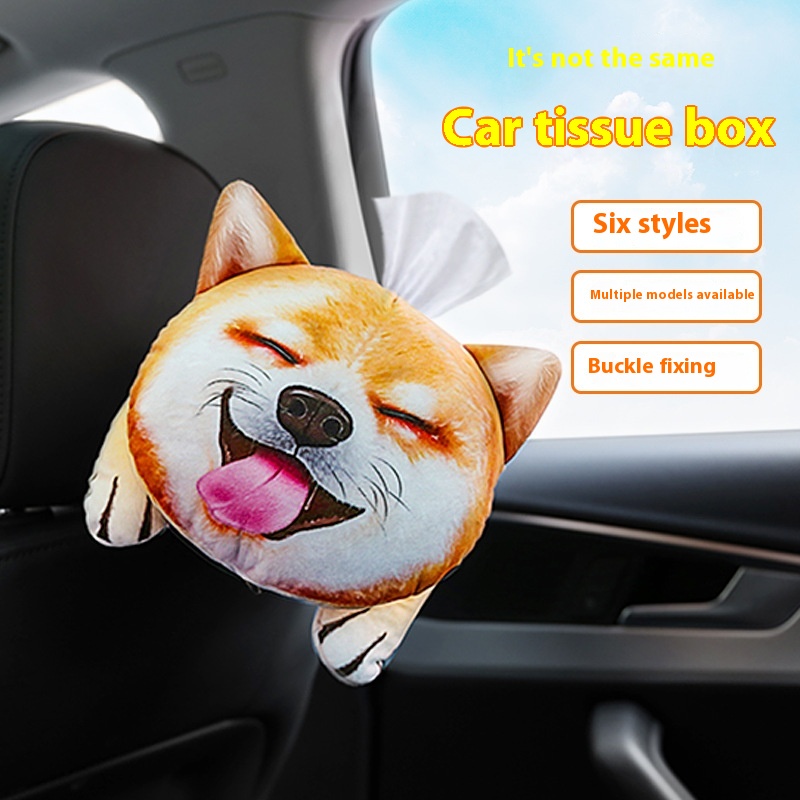 Creative Car Tissue Box3 DCute Pet Cartoon Style Seat Back Multifunctional Armrest Box Hanging Cute Car Tissue Box