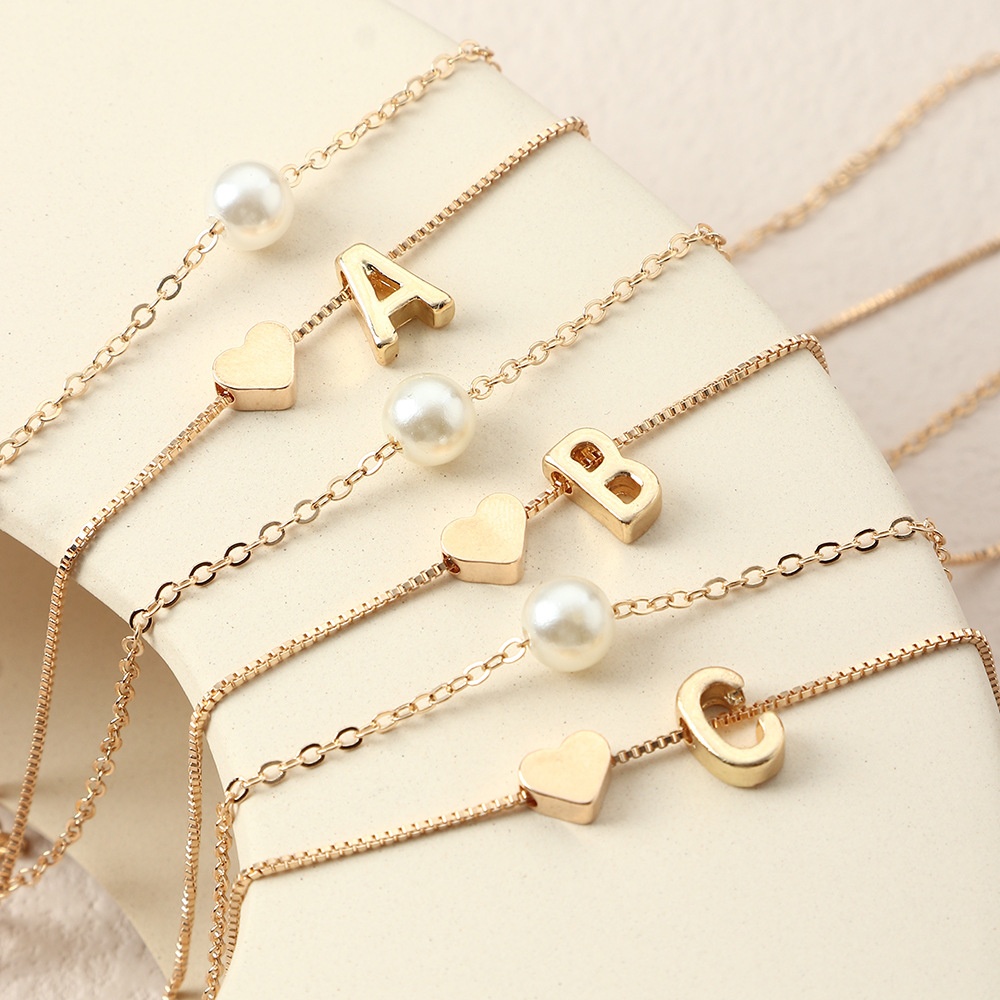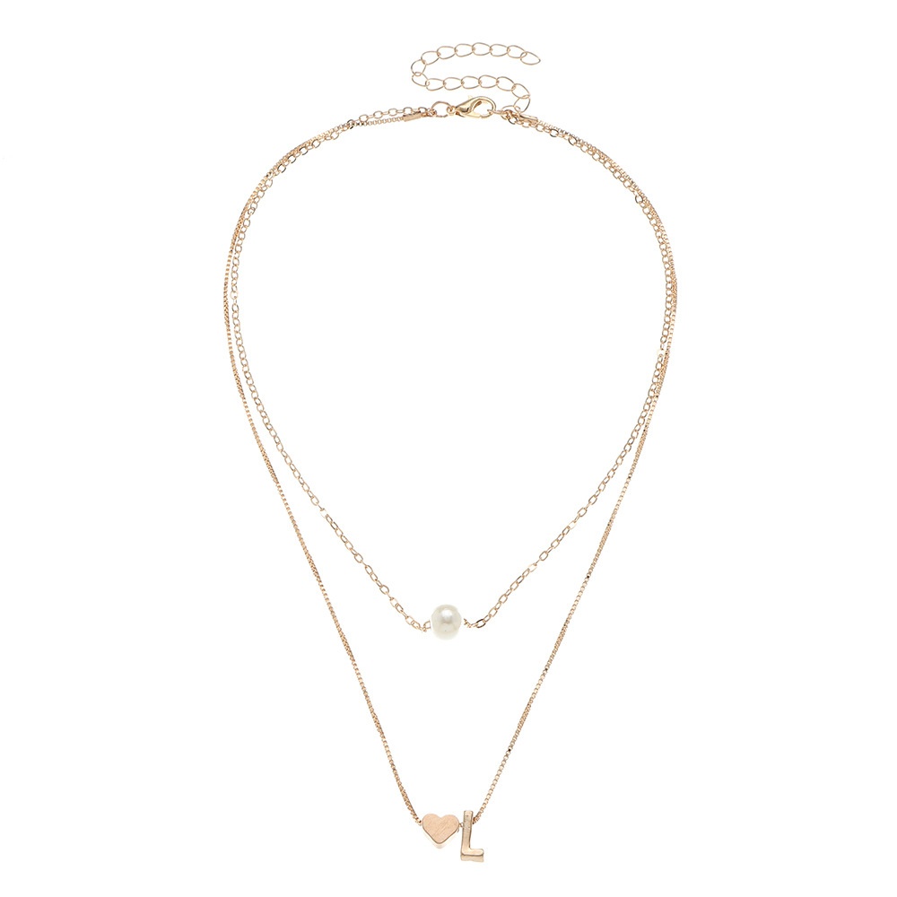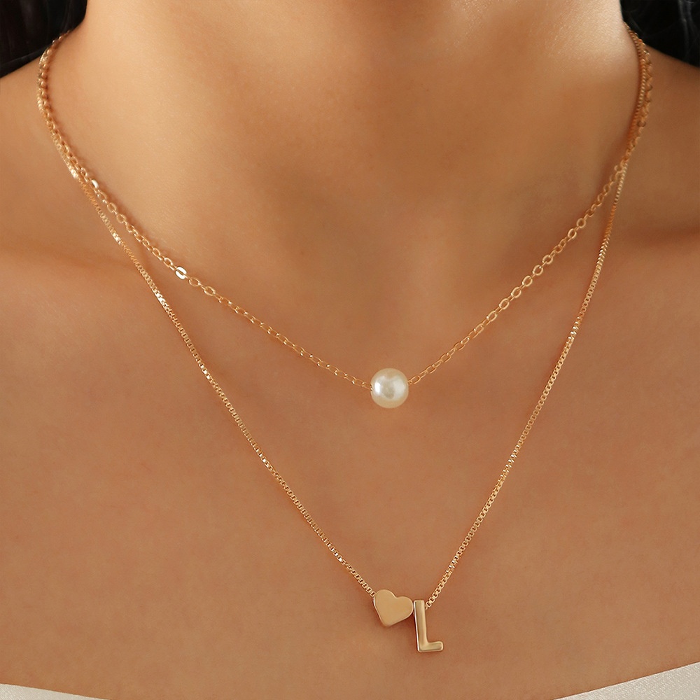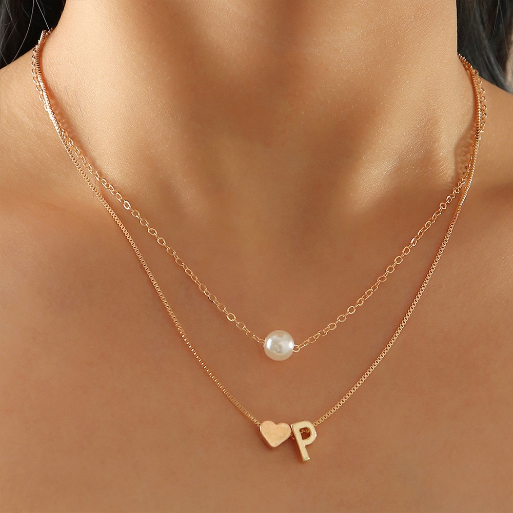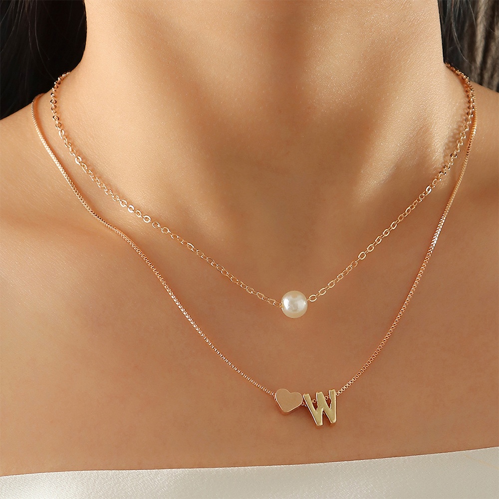 NZ2456 European And American Letter Necklace Pearl Pendant Double Layer Love Valentine's Day Female Necklace Female Jewelry