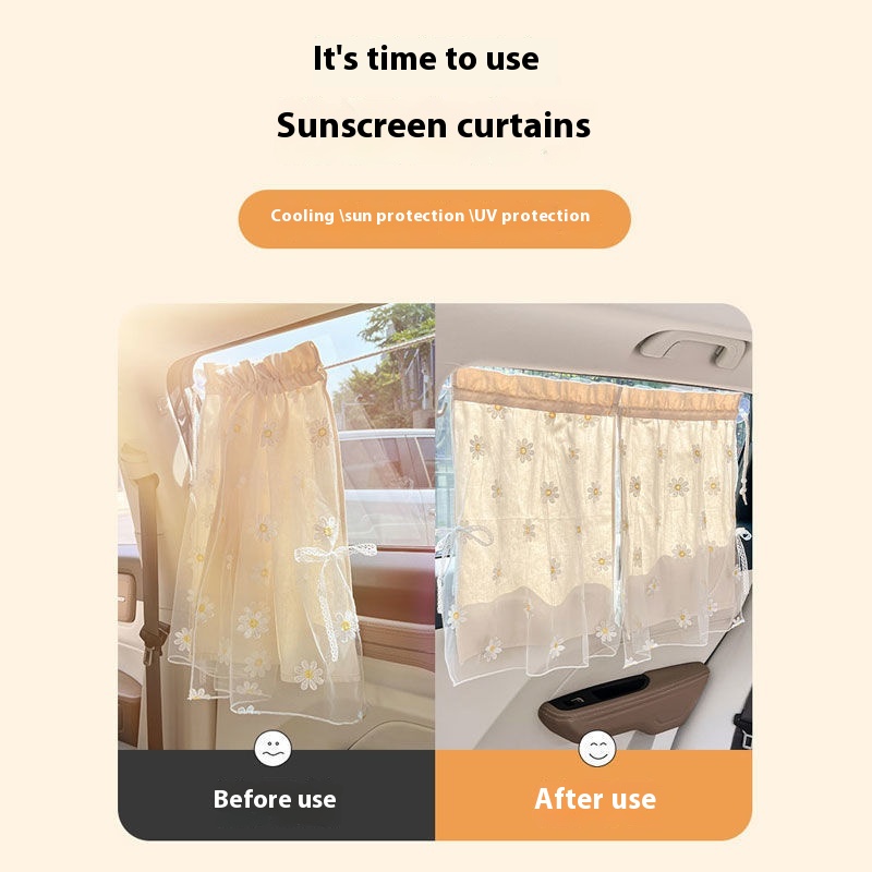 Car Sunshade Hanging Suction Cup Lace Daisy Multifunctional Sun Protection Heatulation Car Double Layer Blackout Curtain