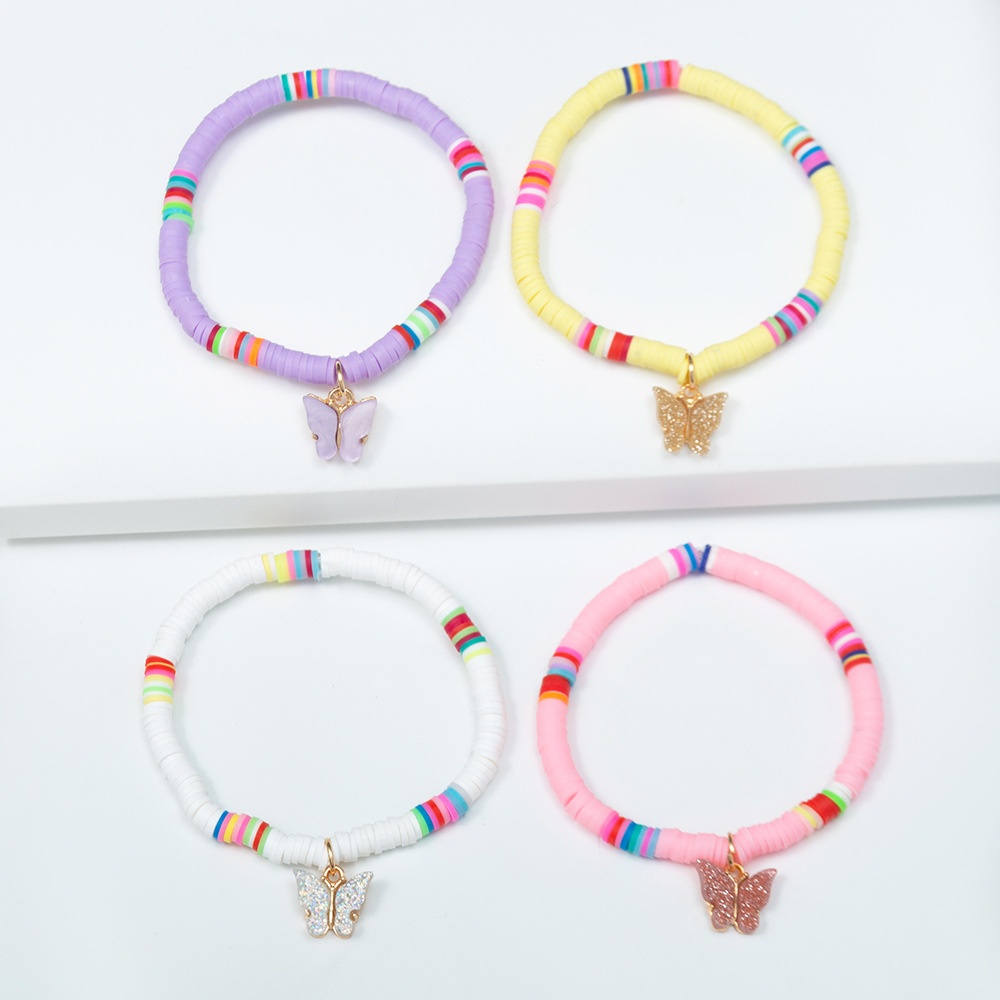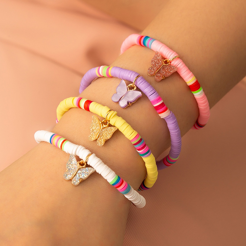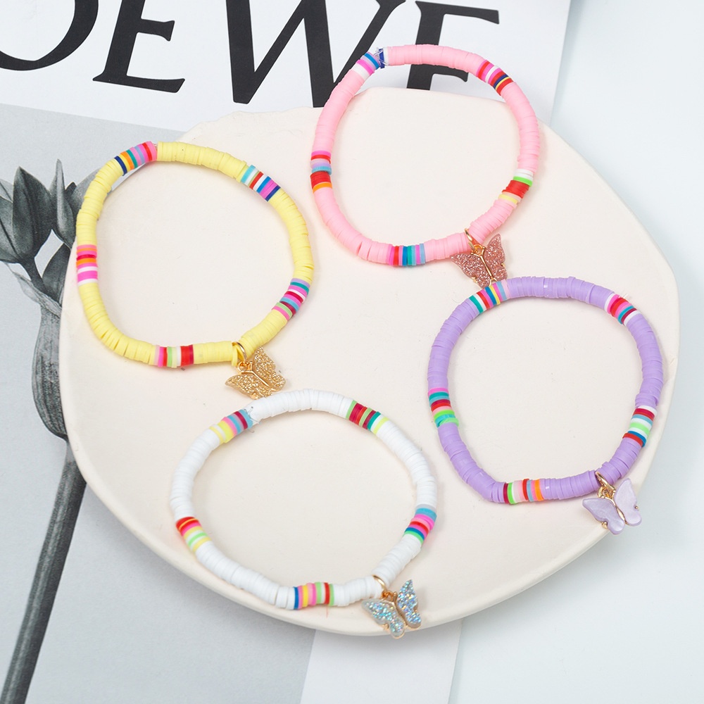BZ1687 European And American Colored Soft Clay Bohemian Style Fresh Gold Powder Plate Butterfly Pendant Female Bracelet