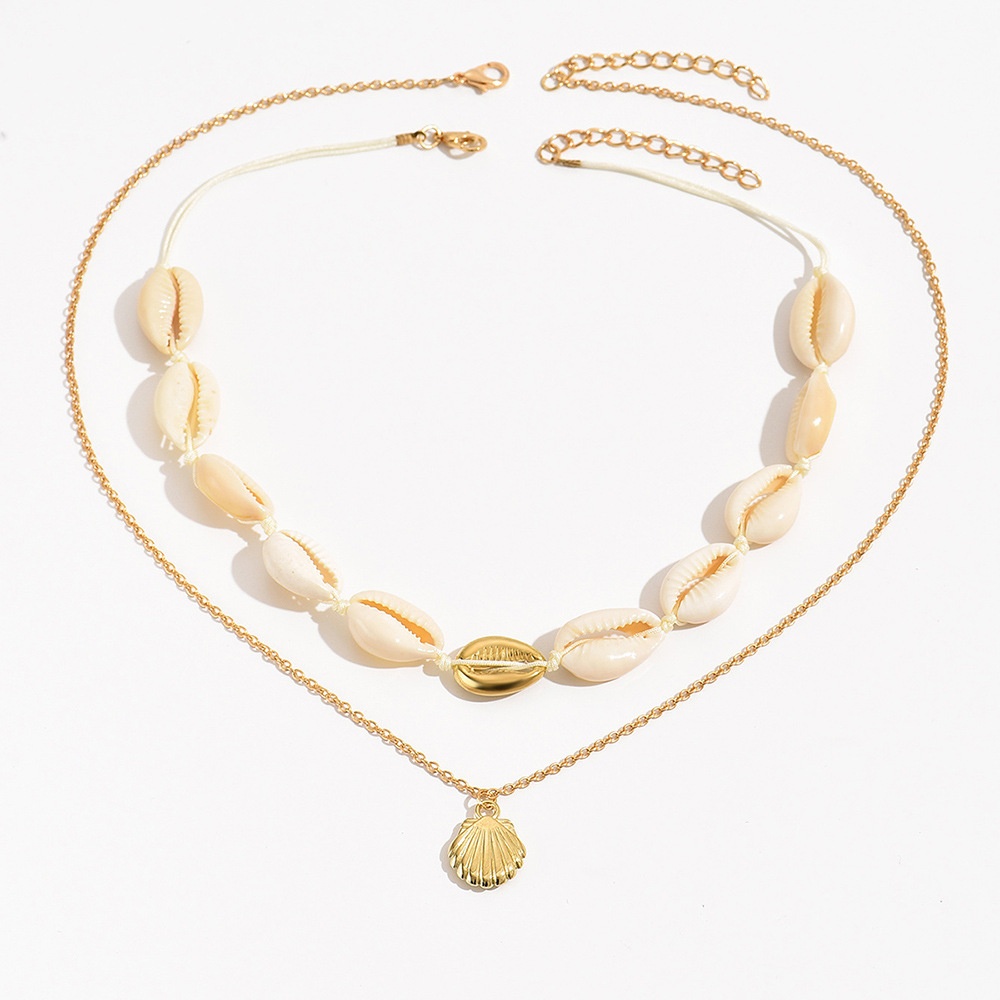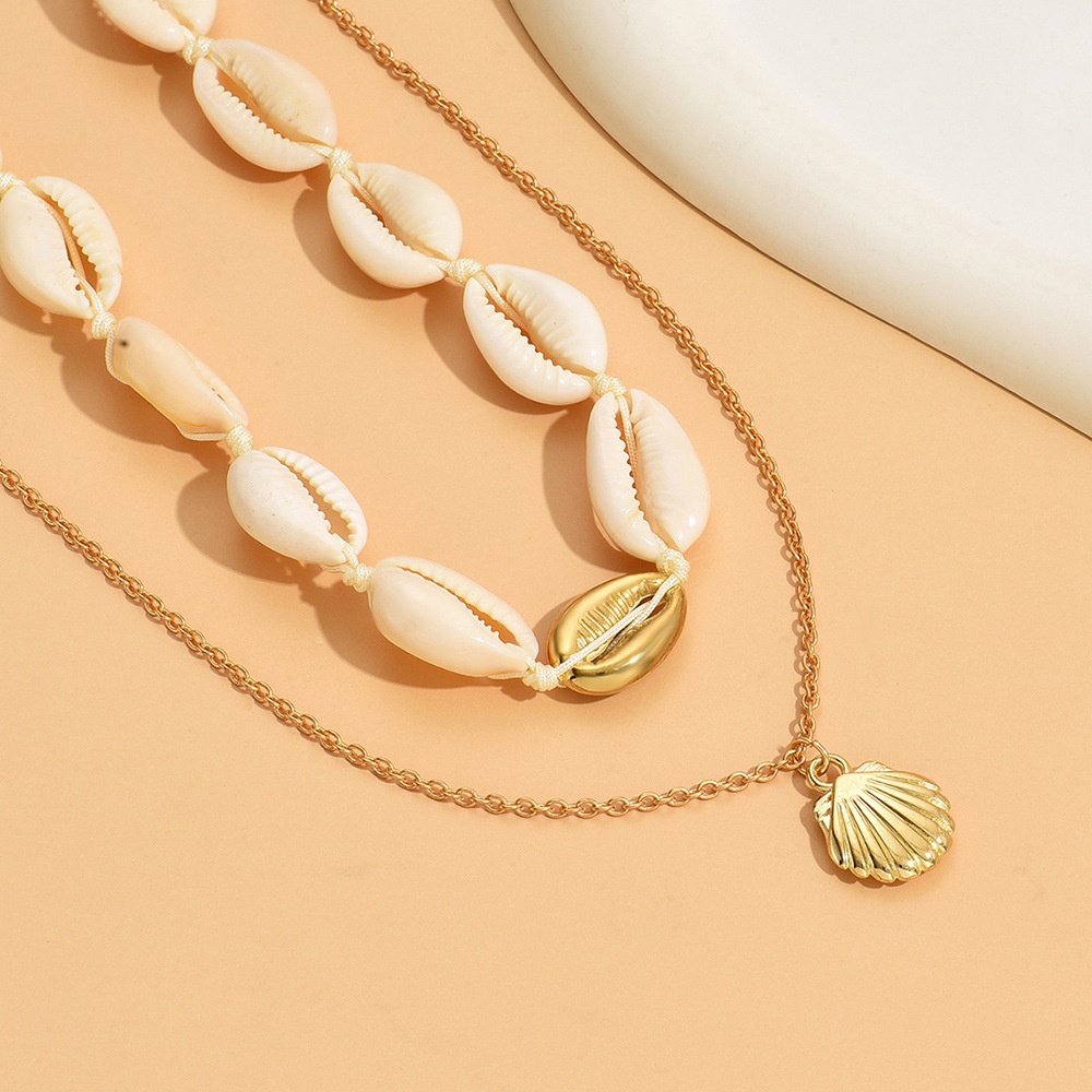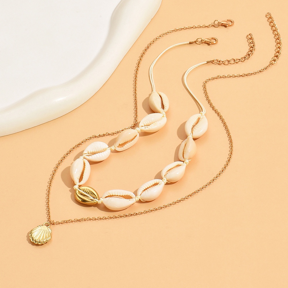 NZ2869 European And American Shell Pendant Splicing Necklace Female Fashion Simple Niche Double Layer Stacking Set Necklace
