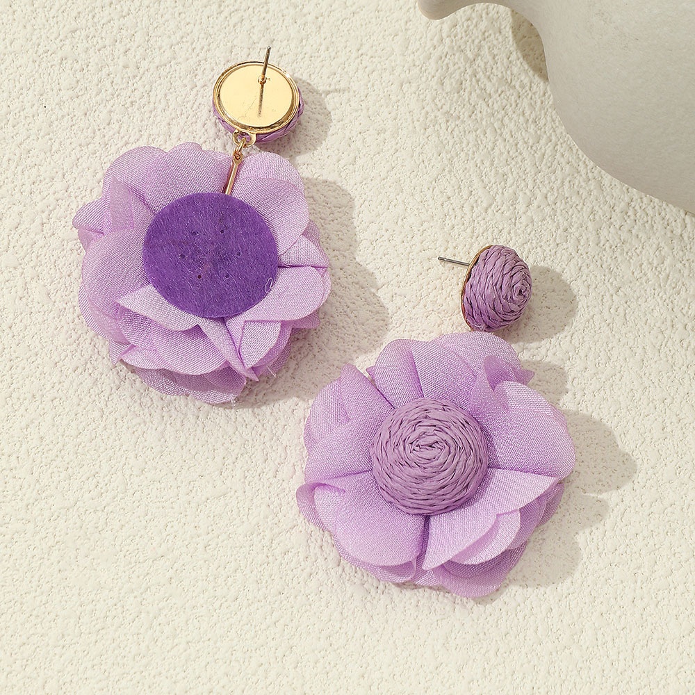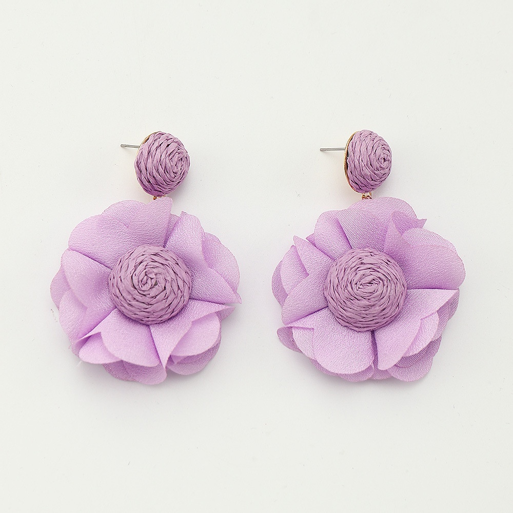 EZ4804 European And American Fabric Flower Handmade Earrings Raffia Earrings Female Elegant Flower Jewelry Female