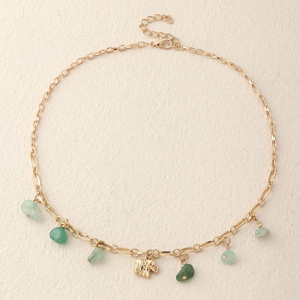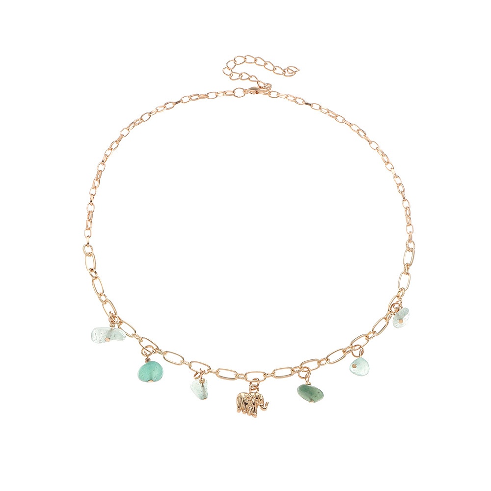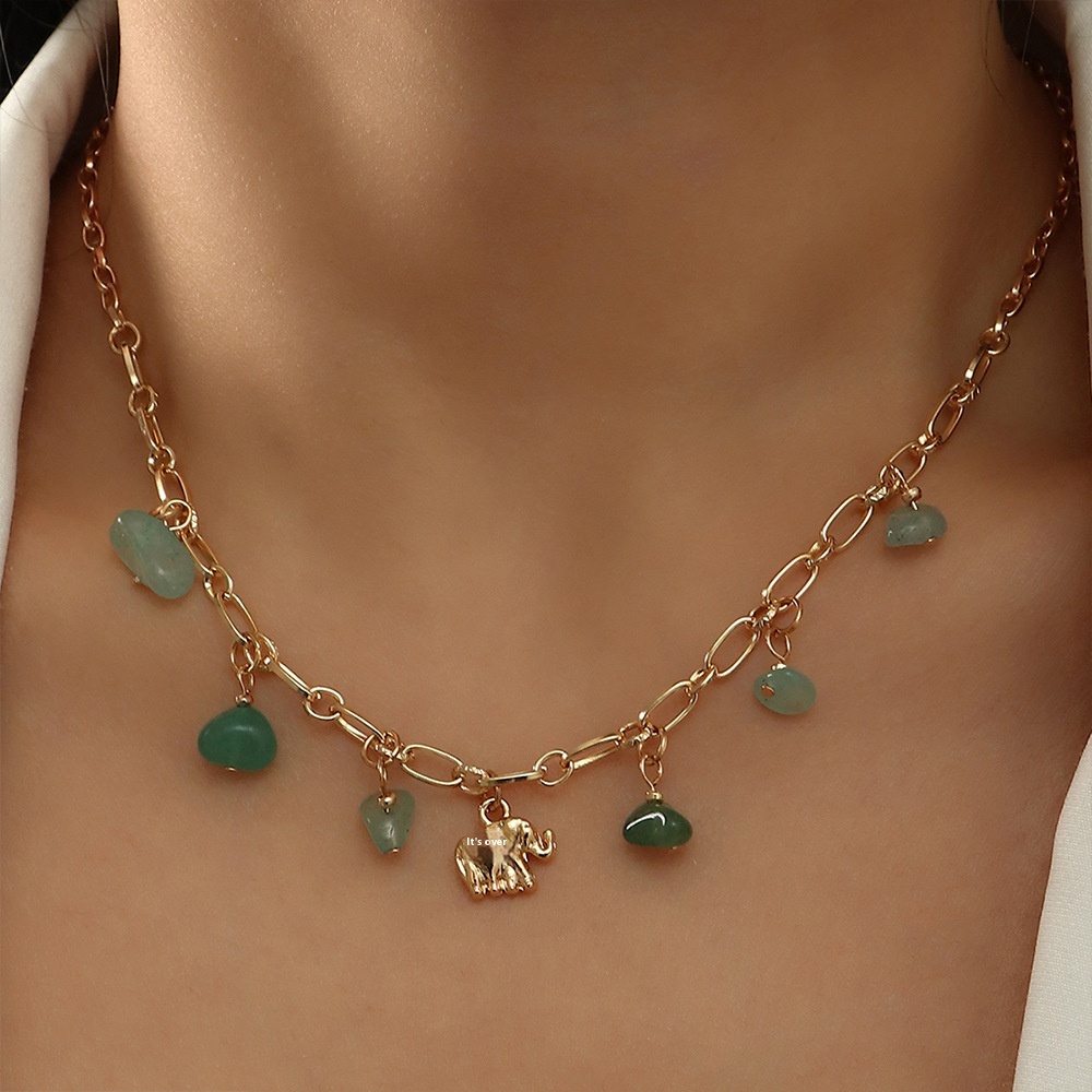 NZ2390 European And American Jewelry Metal Elephant Pendant Gravel Turquoise Pendant Female Necklace