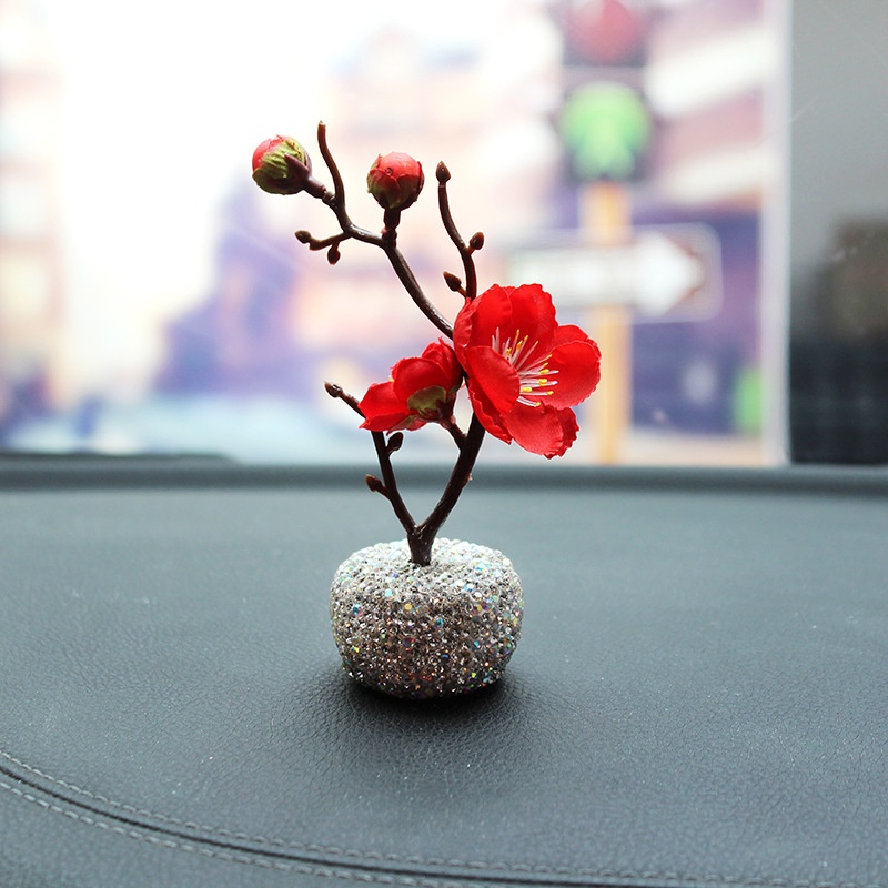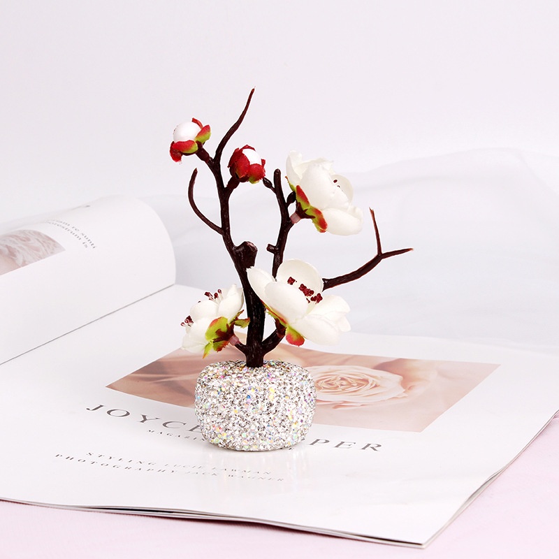 Car Accessories Cute Creative Plum Blossom Branches Inlaid With Diamonds Car Ornaments Center Console Decoration Personality Simple Ladies