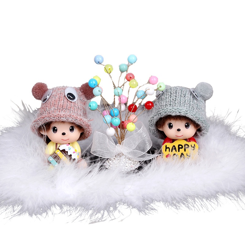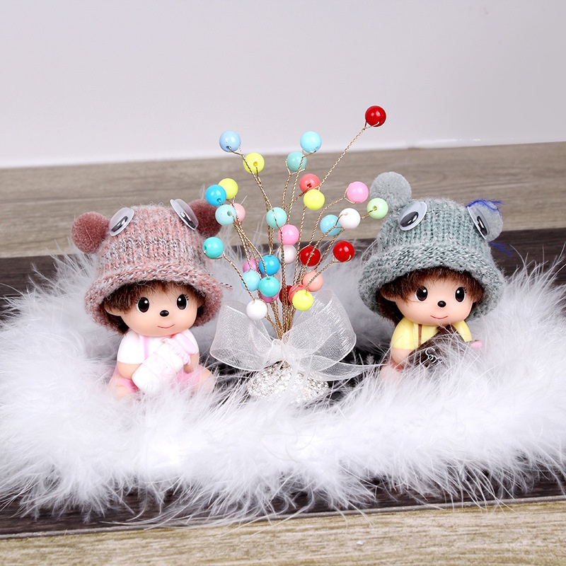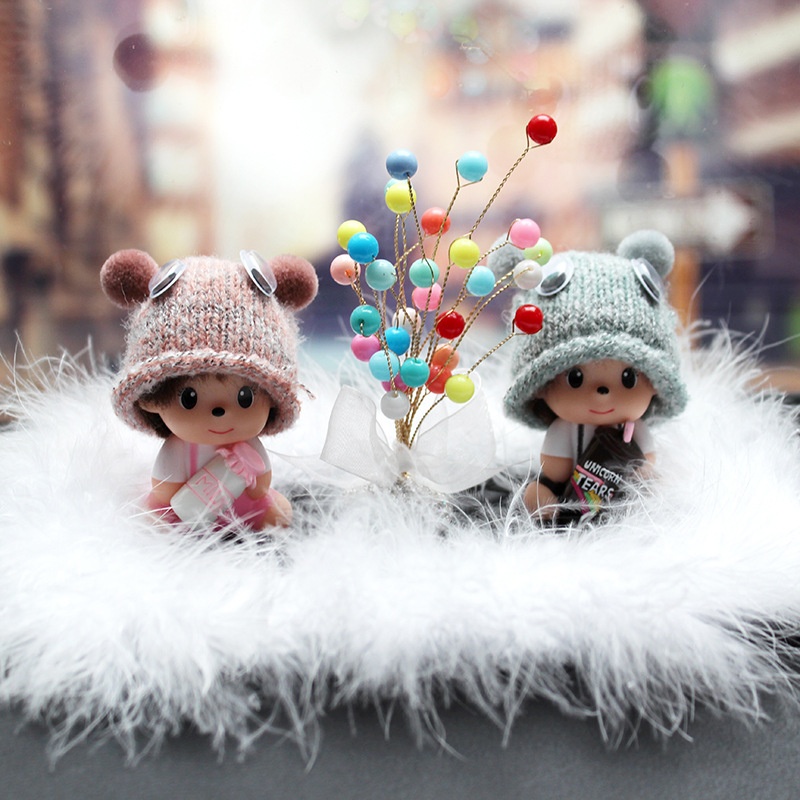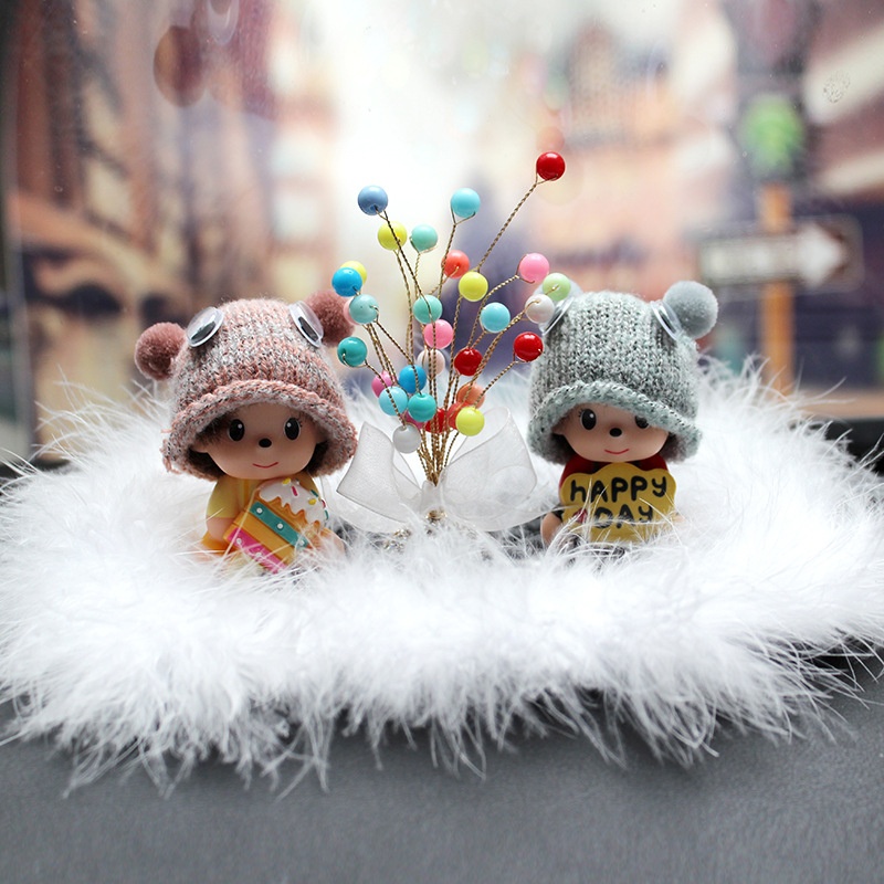 Car Ornaments Cute Creative Car Interior Car Perfume Monchhichi Ornaments Set With Feather Anti-slip Mat