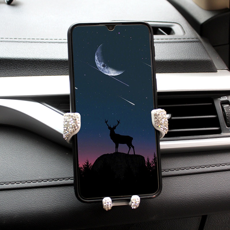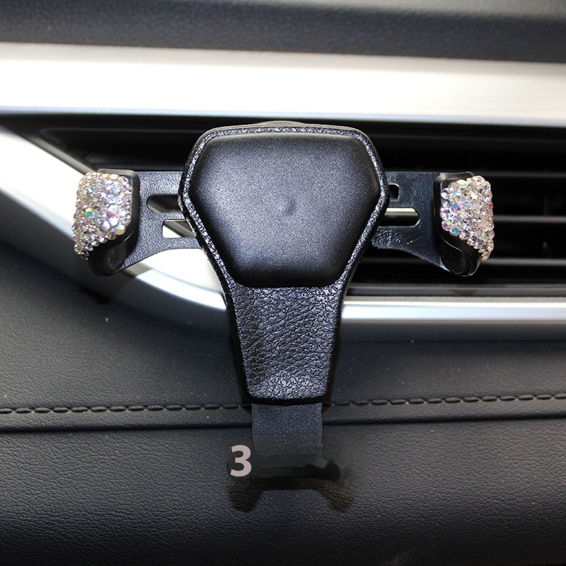 Car Gravity Mobile Phone Holder Creative Buckle Car Air Outlet Mobile Phone Holder Inlaid Diamond Horizontal Available Men's Black