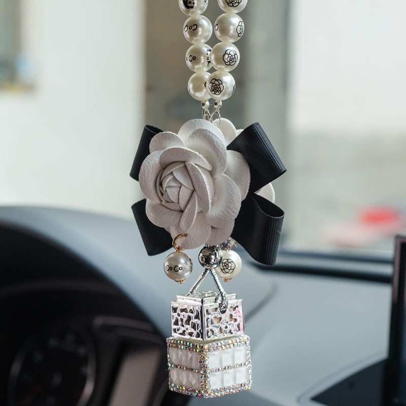 Car Pendants,Car Interior Ornaments,Exquisite Diamond-studded Perfume Bottles,Camellia Car Interior Ornaments,Car Supplies DIY
