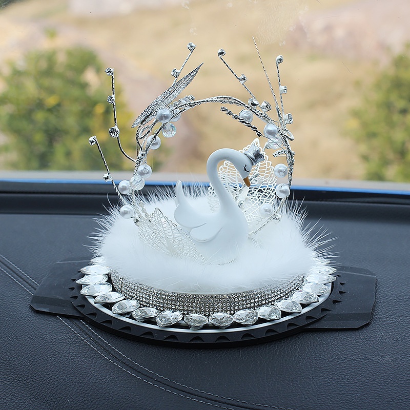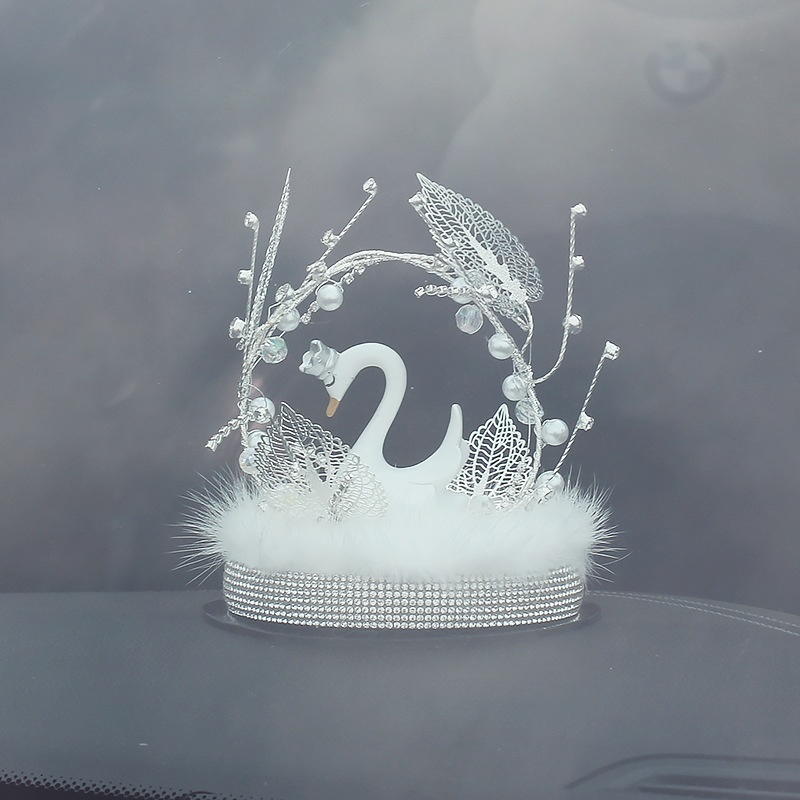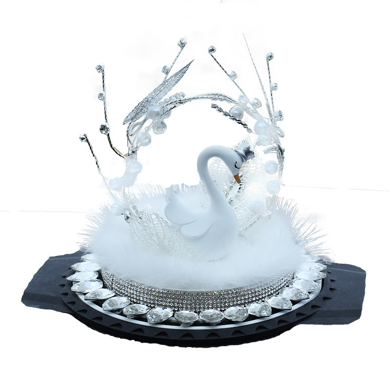 Car Ornaments Style Resin Swan Car Display Metal Flower Basket Rhinestone Creative Car Interior Decoration Feather