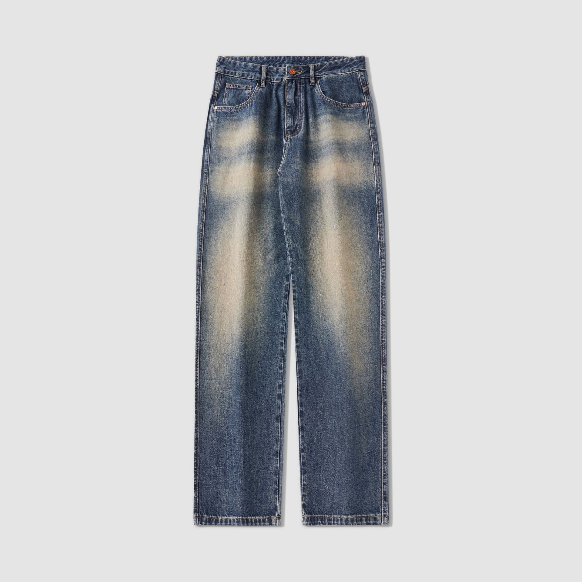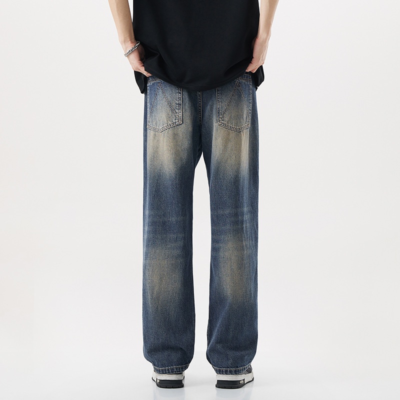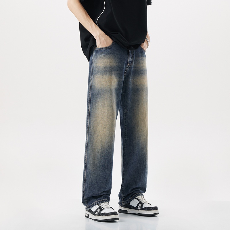 LKTMMen's Clothing#American Retro Blue Washed Jeans Men's Handsome Korean Style Loose Straight Wide Leg Mopping Trousers