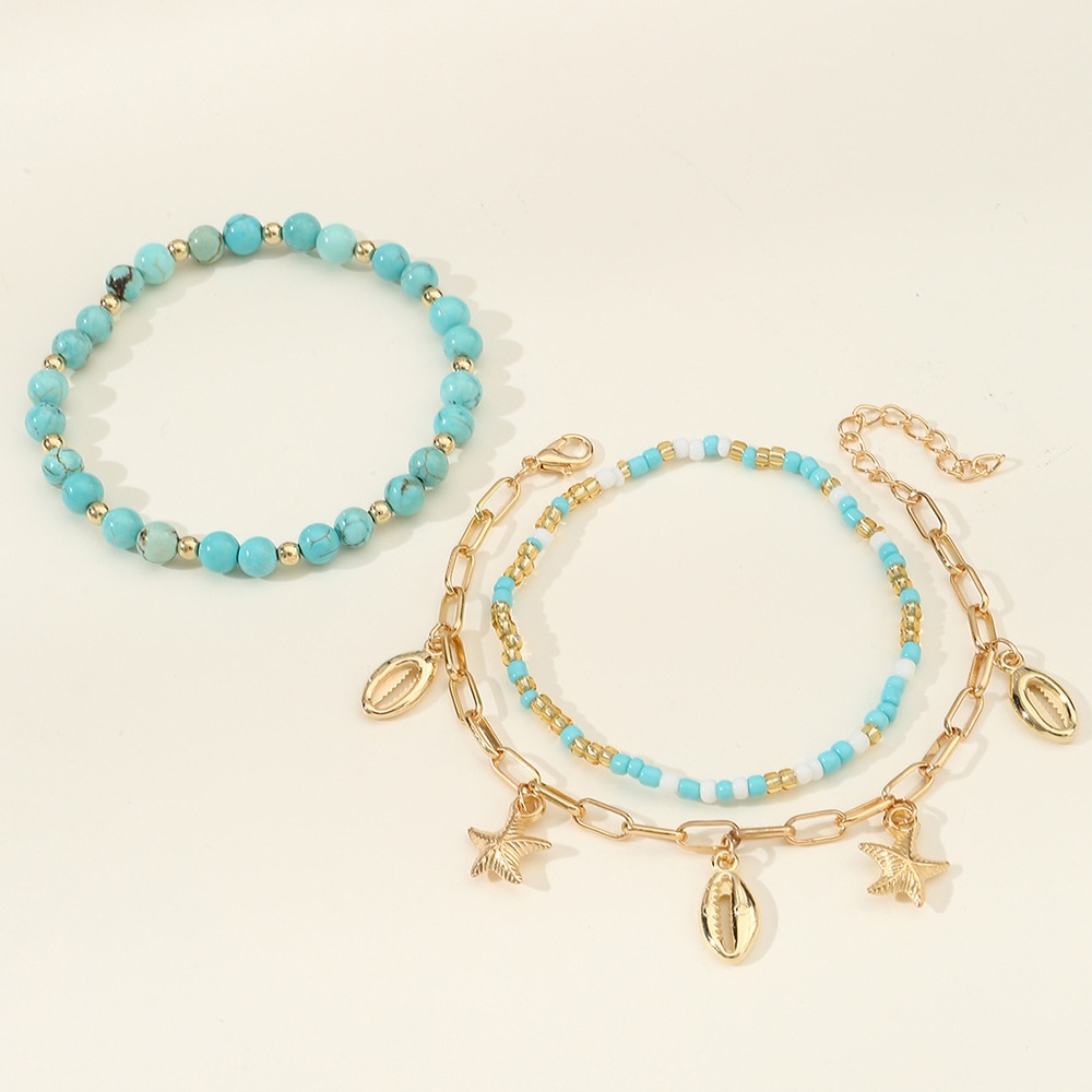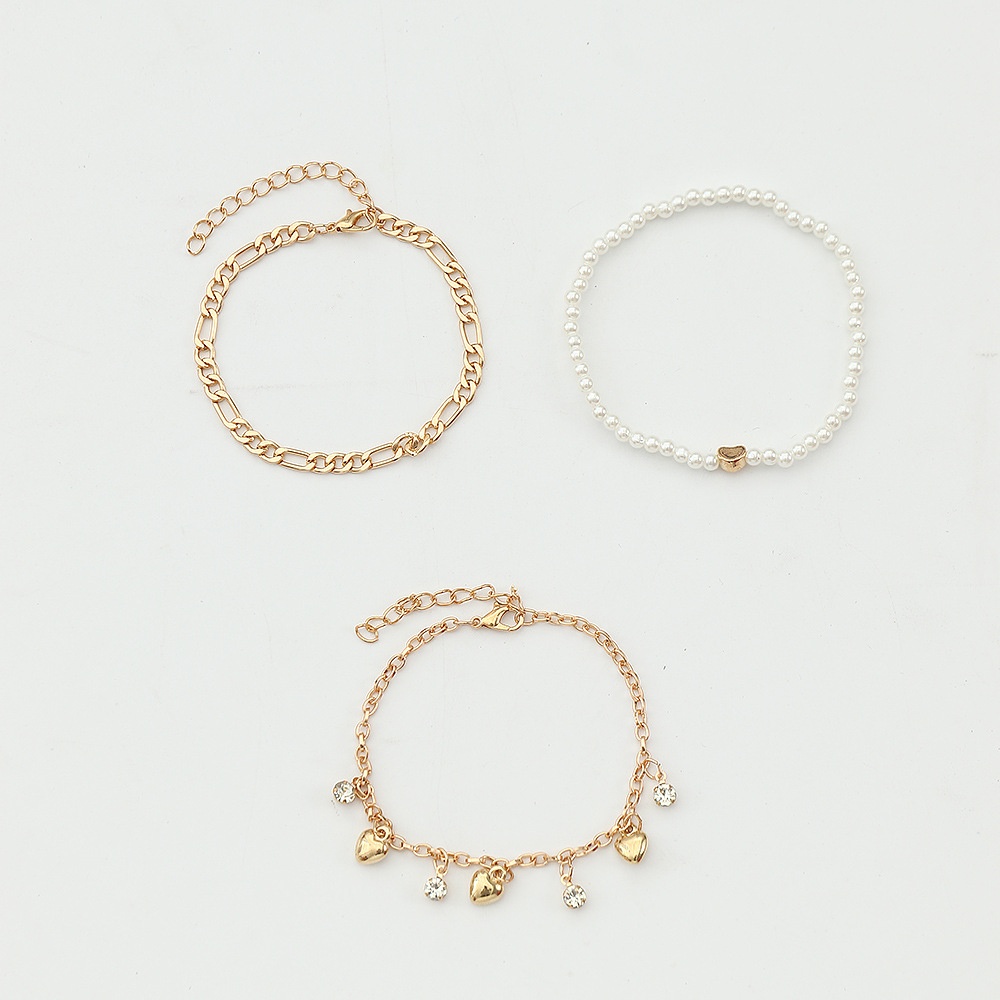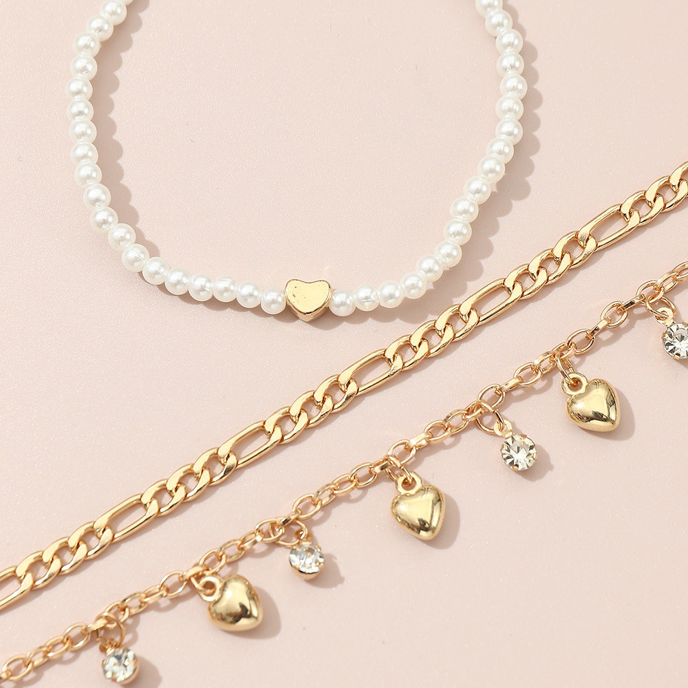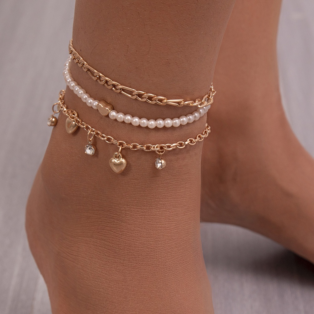 FZ0369 European And American Love Pendant Metal Chain Pearl Anklet Set Female Summer Beach Fashion Foot Ornaments