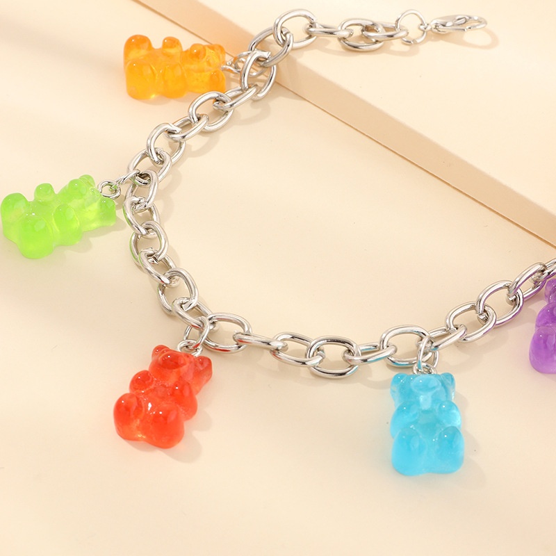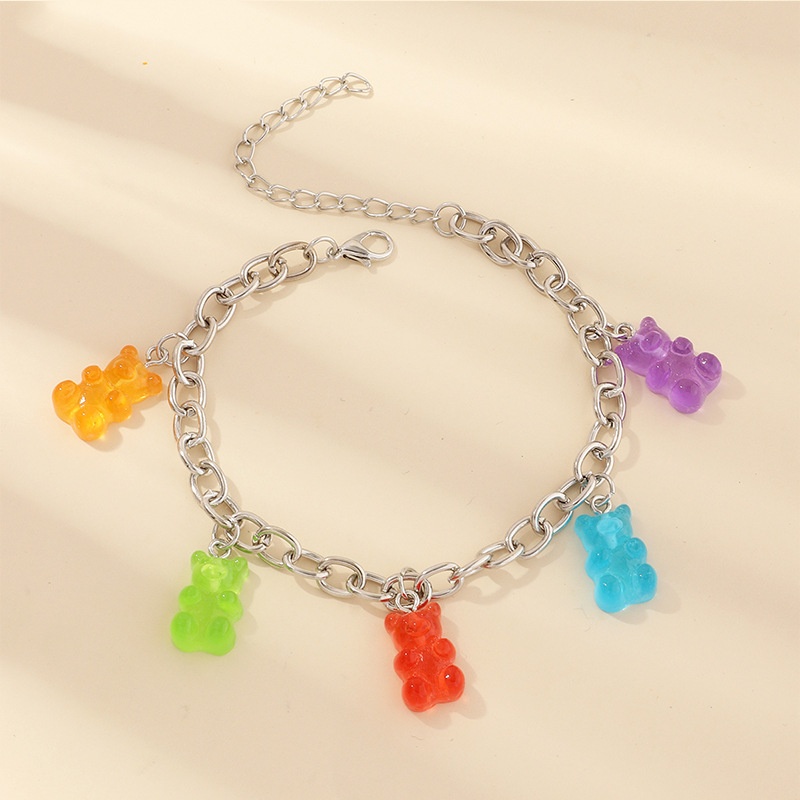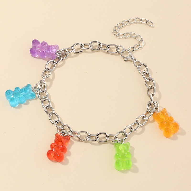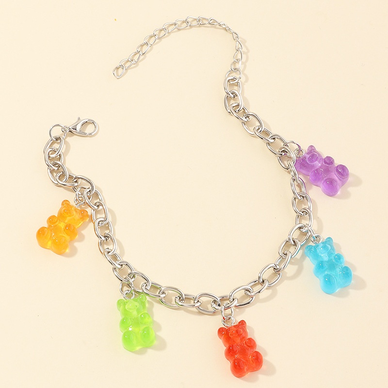 FZ0127 European And American Jewelry Sweet And Cute Resin Bear Anklet Colorful Bear Pendant Bracelet