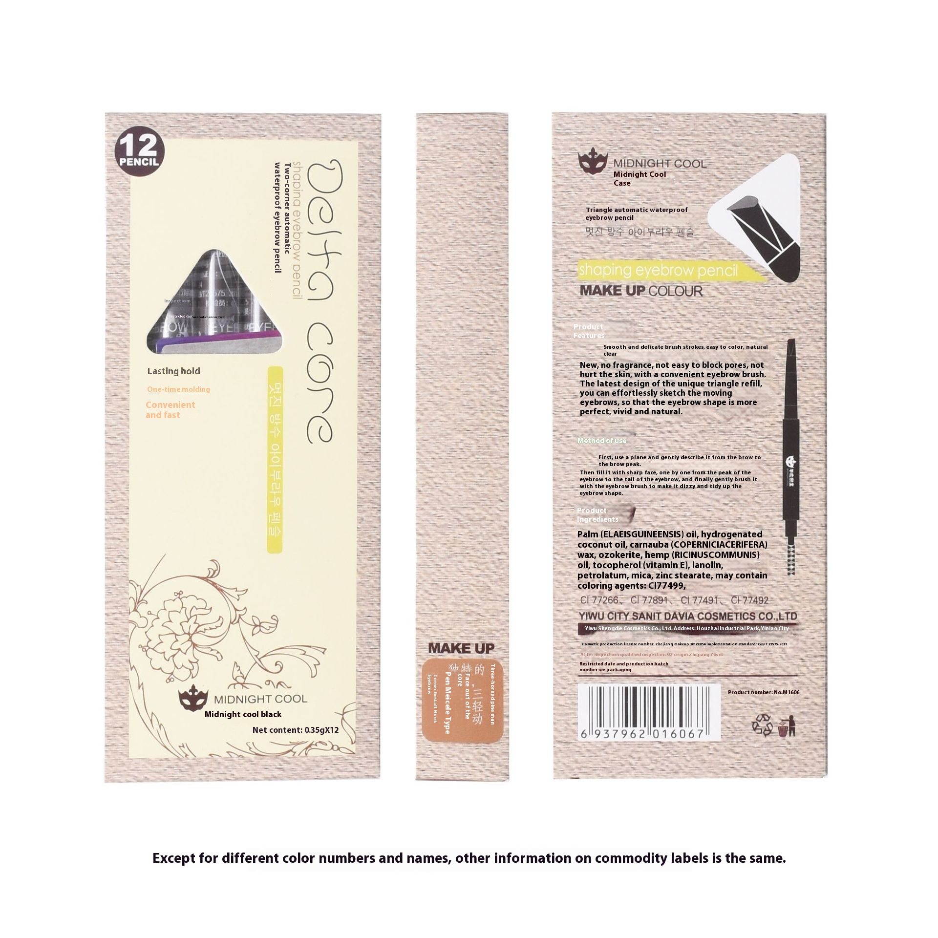 Midnight Cool Black Boutique Domestic Double-headed Automatic Eyebrow Pencil Sweat-proof And Long-lasting Without Makeup Removal With Spiral Eyebrow Brush Triangular Refill