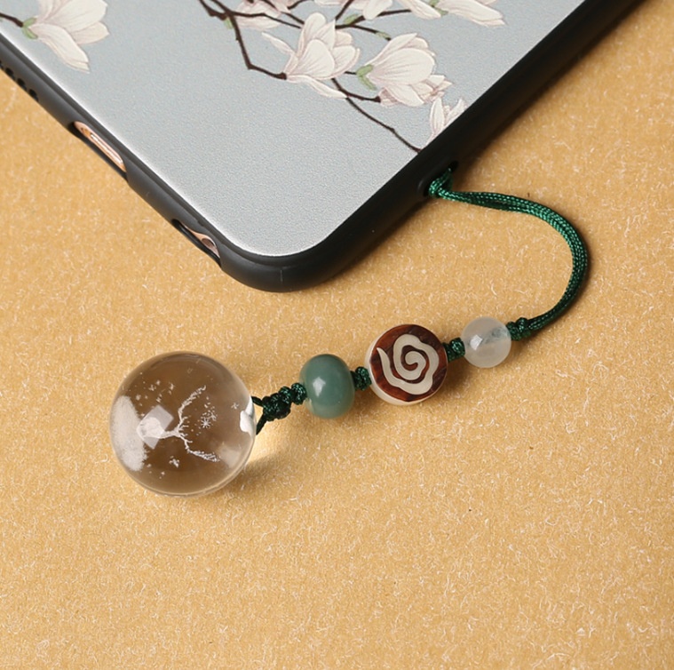 ADeer With You Natural White Crystal Transfer Ball Car Keychain Pendant Mobile Phone Chain Bag Pendant