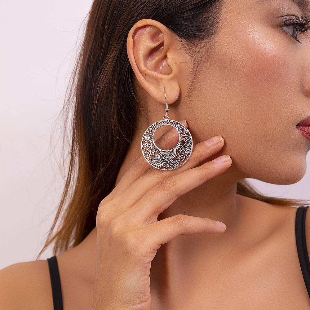 EZ4786 European And American Retro Metal Hollow Carved Earrings For Women,Exotic Ethnic Style,Simple And Light Luxury Earrings For Women