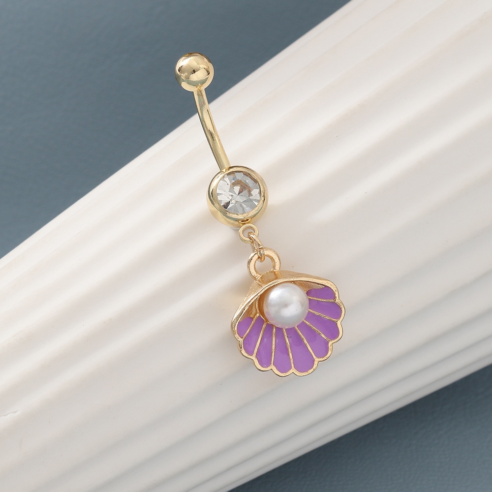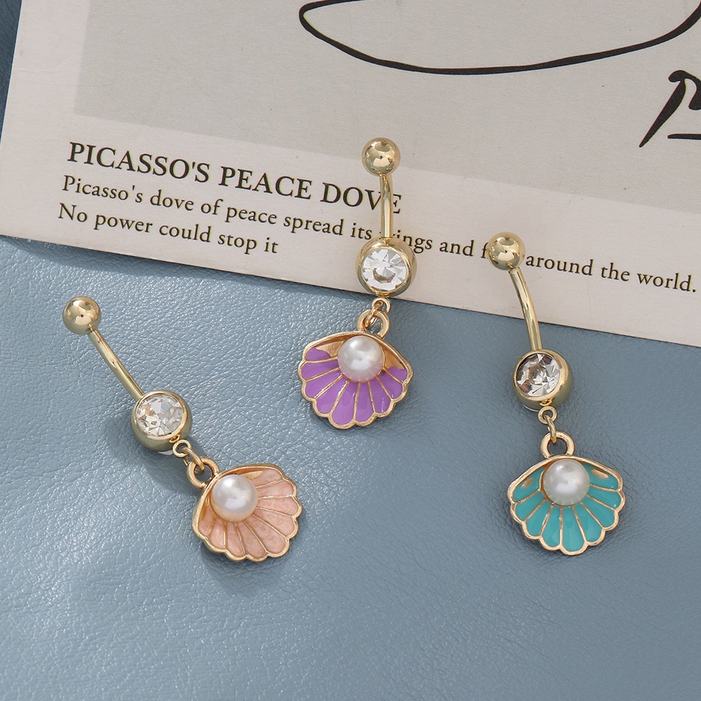 DZ0326 European And American Sexy Micro-inlaid Zircon Shell Pearl Nail Navel Decoration Stainless Steel Body Piercing Belly Button Ring
