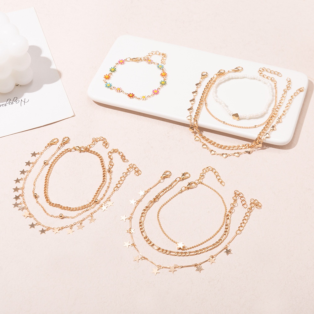 FZ0285 European And American Multi-layer Metal Anklet Female Leisure Travel Girlfriend Five-pointed Star Oil Drop Small Flower Anklet