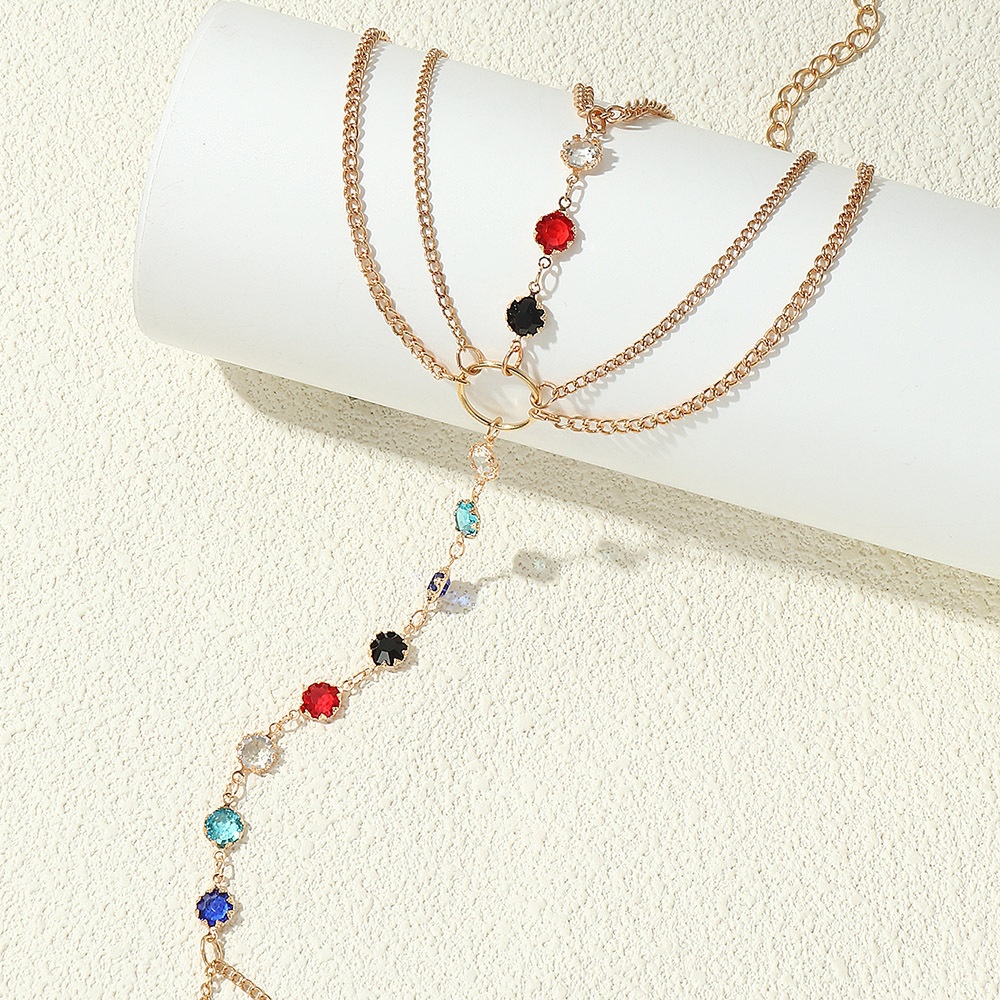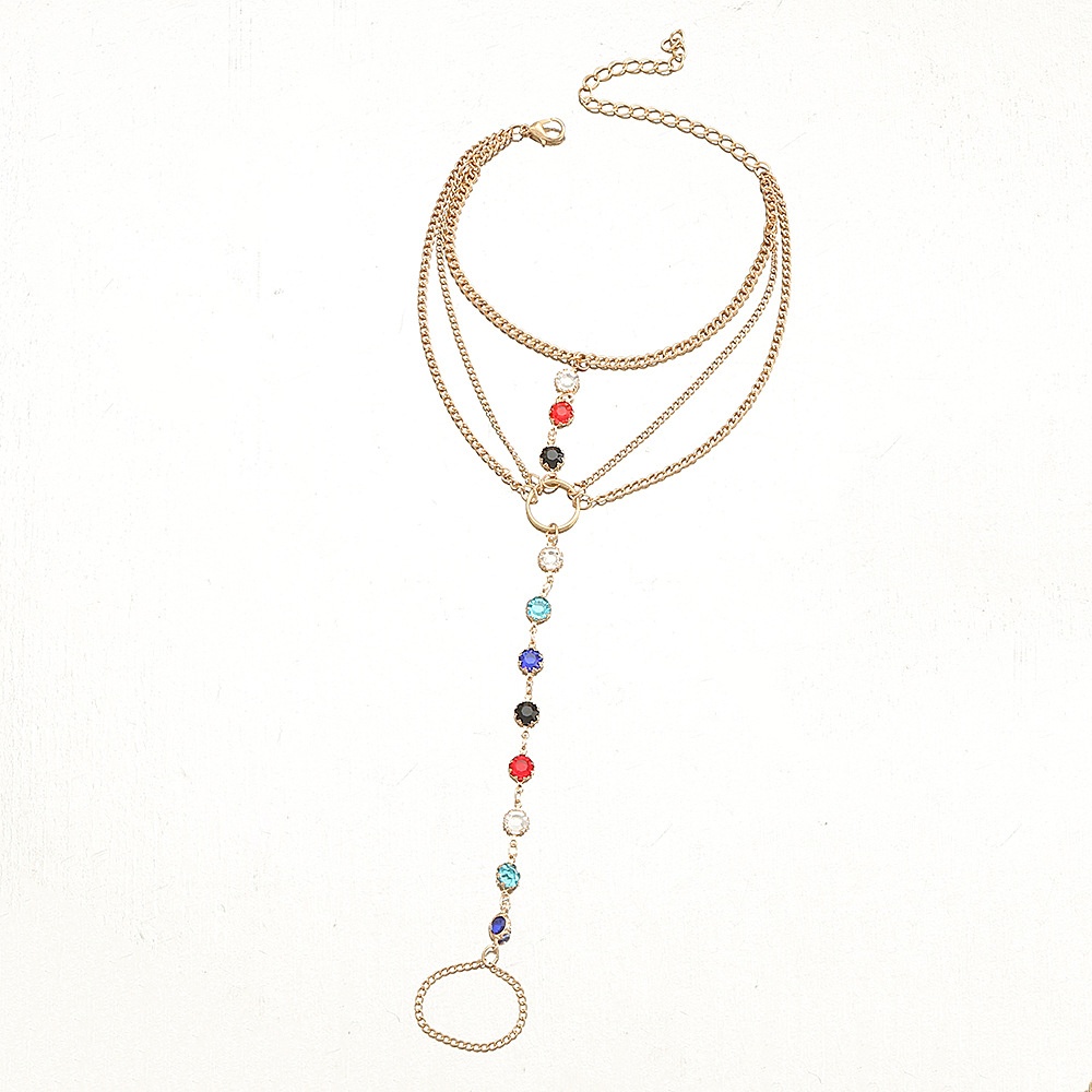 FZ0347je European And American Summer Beach Multi-layer Anklet Female Color Diamond Finger Fashion Personality Female