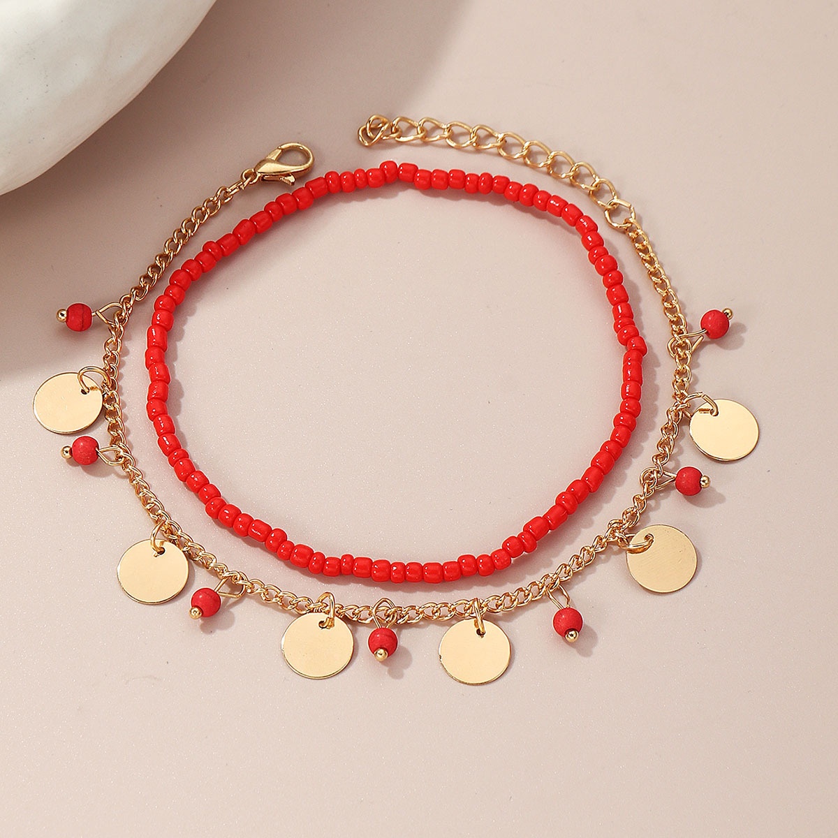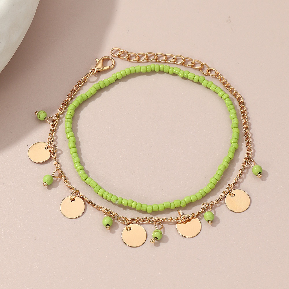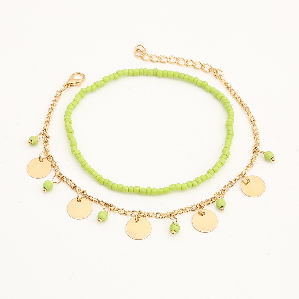 FZ0044 European And American Beach Anklet Set Female Fashion Simple Metal Sequin Millet Bead Foot Ornaments
