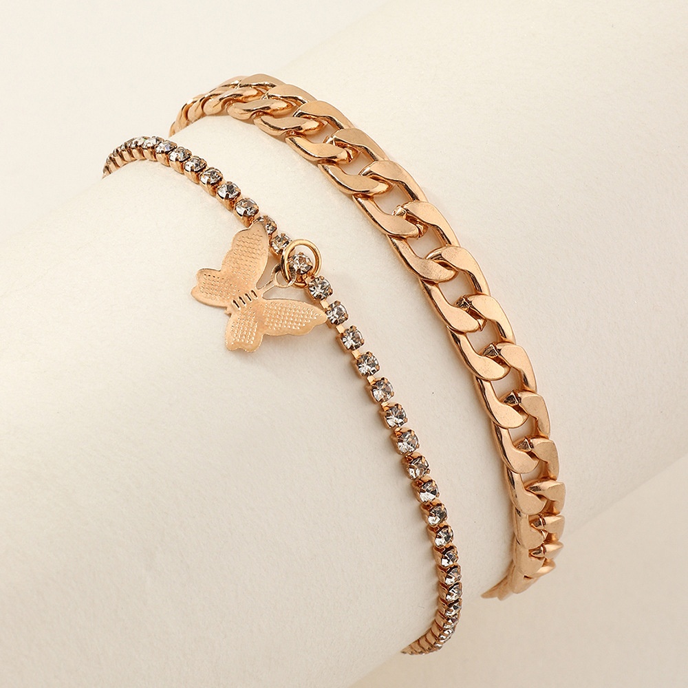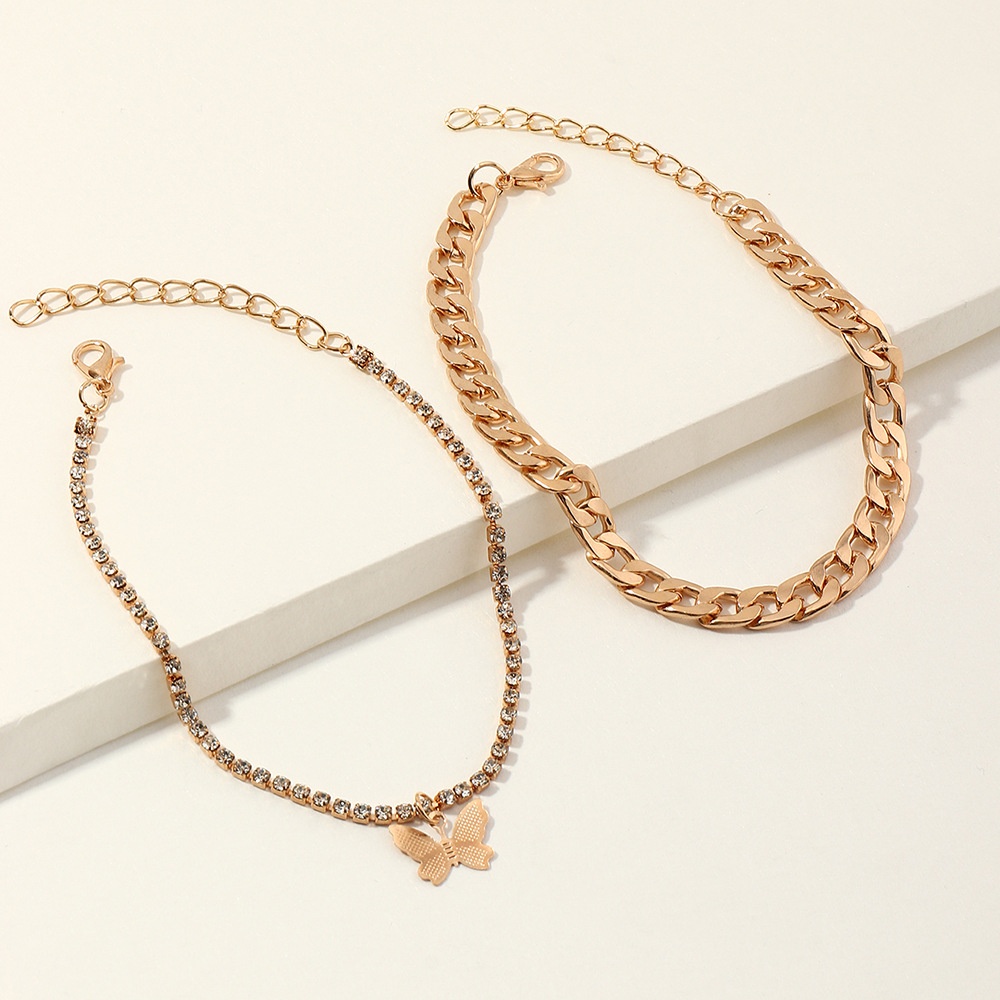 FZ0214 European And American Fashion Accessories Popular Heavy Metal Cuban Chain Foot Decoration Claw Chain Butterfly Anklet
