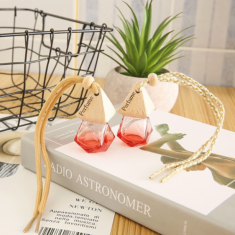 Car Perfume Bottle Empty Bottle Car Pendant Diamond Colored Glass Wooden Perfume Car Pendant High-end Essential Oil Bottle Gift