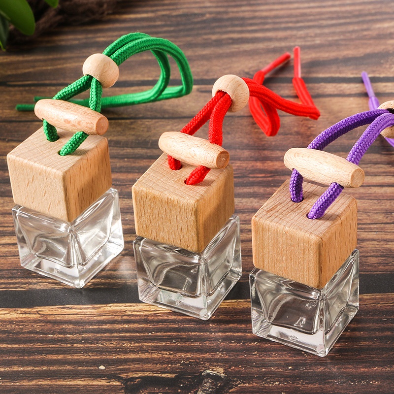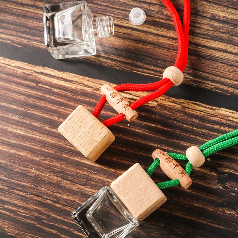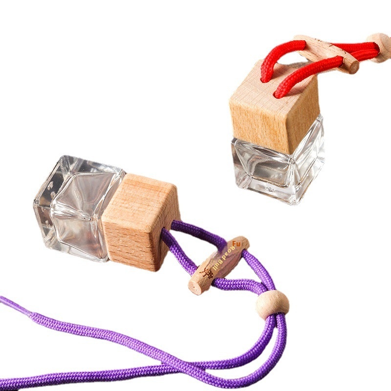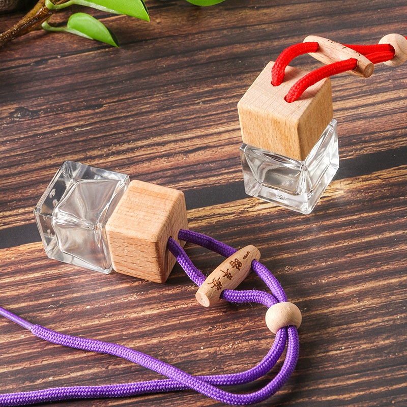 Car Perfume Bottle Pendant Glass Empty Bottle Wooden DIYBottle Cap Square Water Cube Small Gift