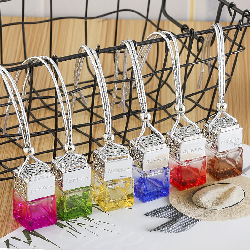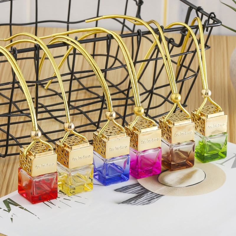 Car Perfume Bottle Pendant Gold And Silver Hollow Square Glass Empty Bottle Essential Oil Bottle Men And Women Car Hanging Gift