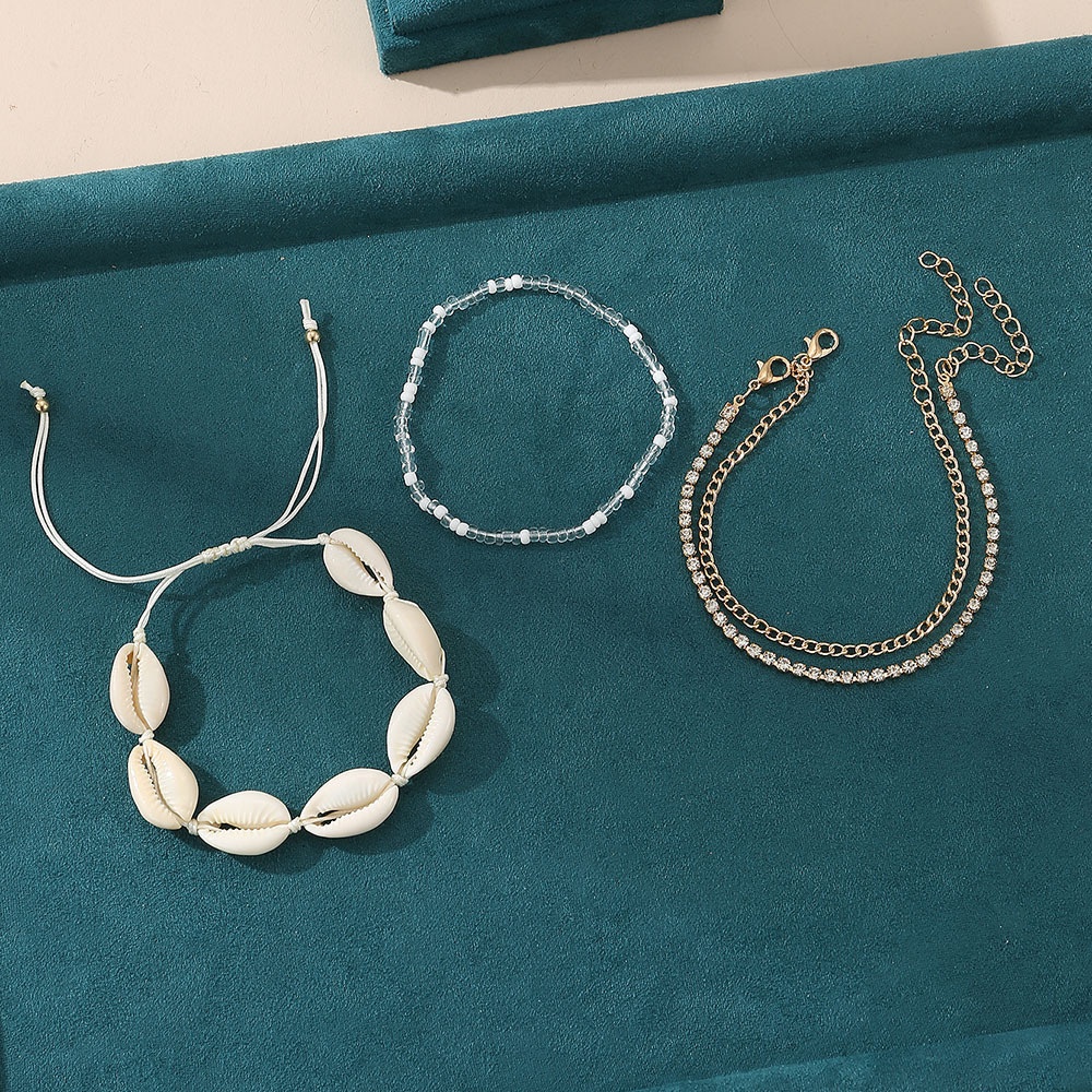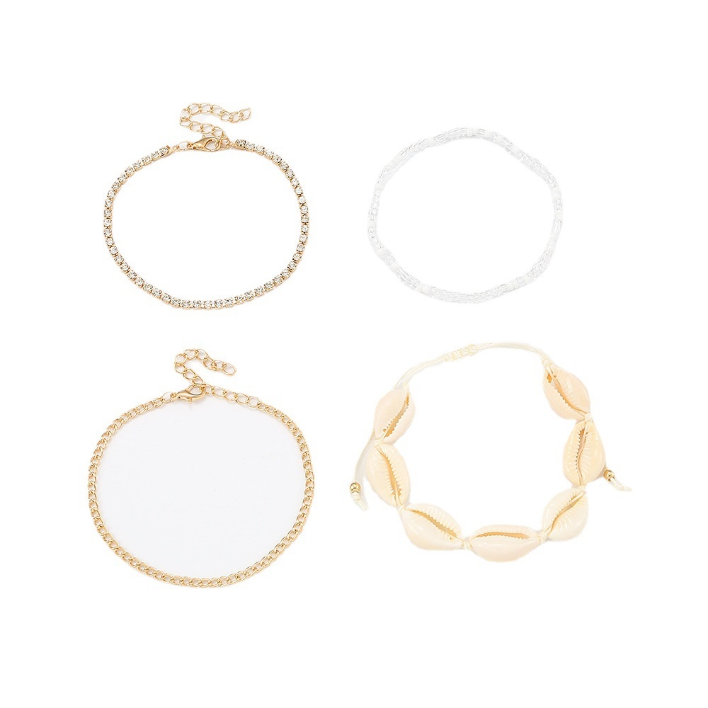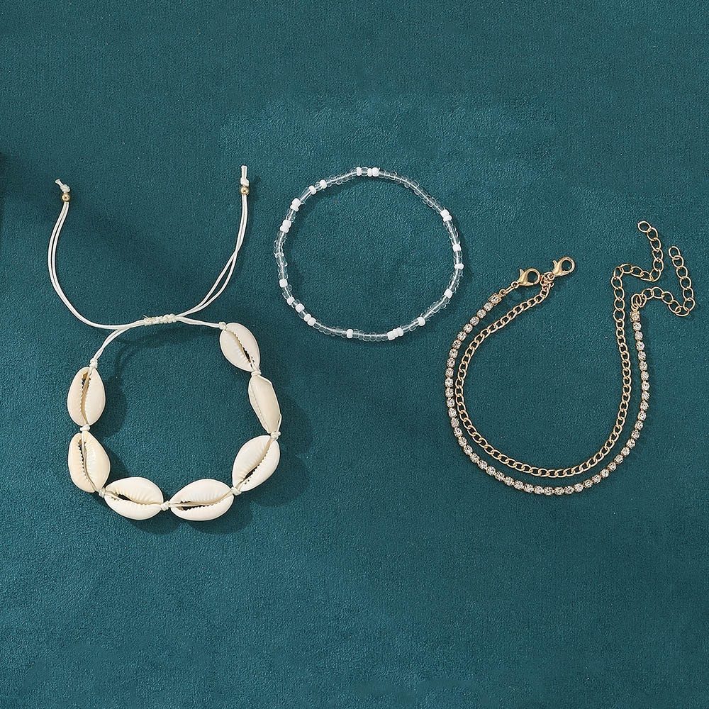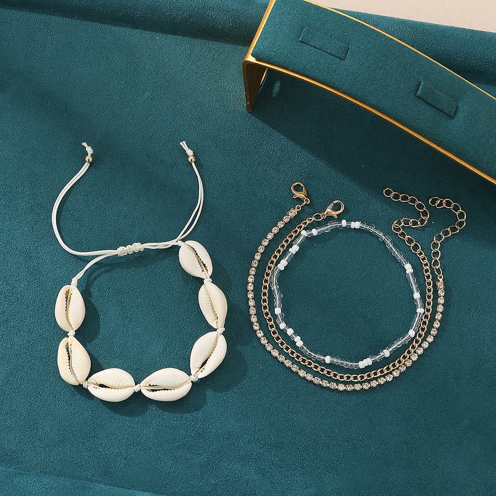FZ0362 European And American Female Shell Anklet Bohemian Beach Holiday Rice Bead Anklet Multi-layer Female Foot Jewelry