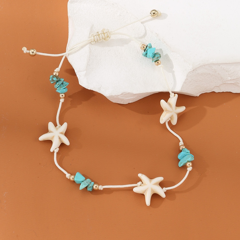FZ0366 European And American Women's Summer Anklet Starfish Turquoise Creative Handmade Bohemian Beach Foot Jewelry