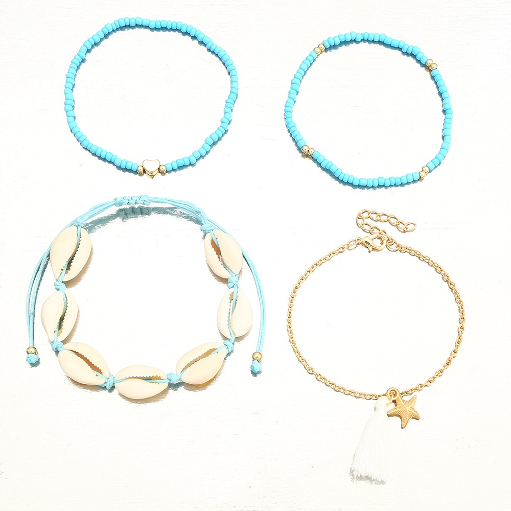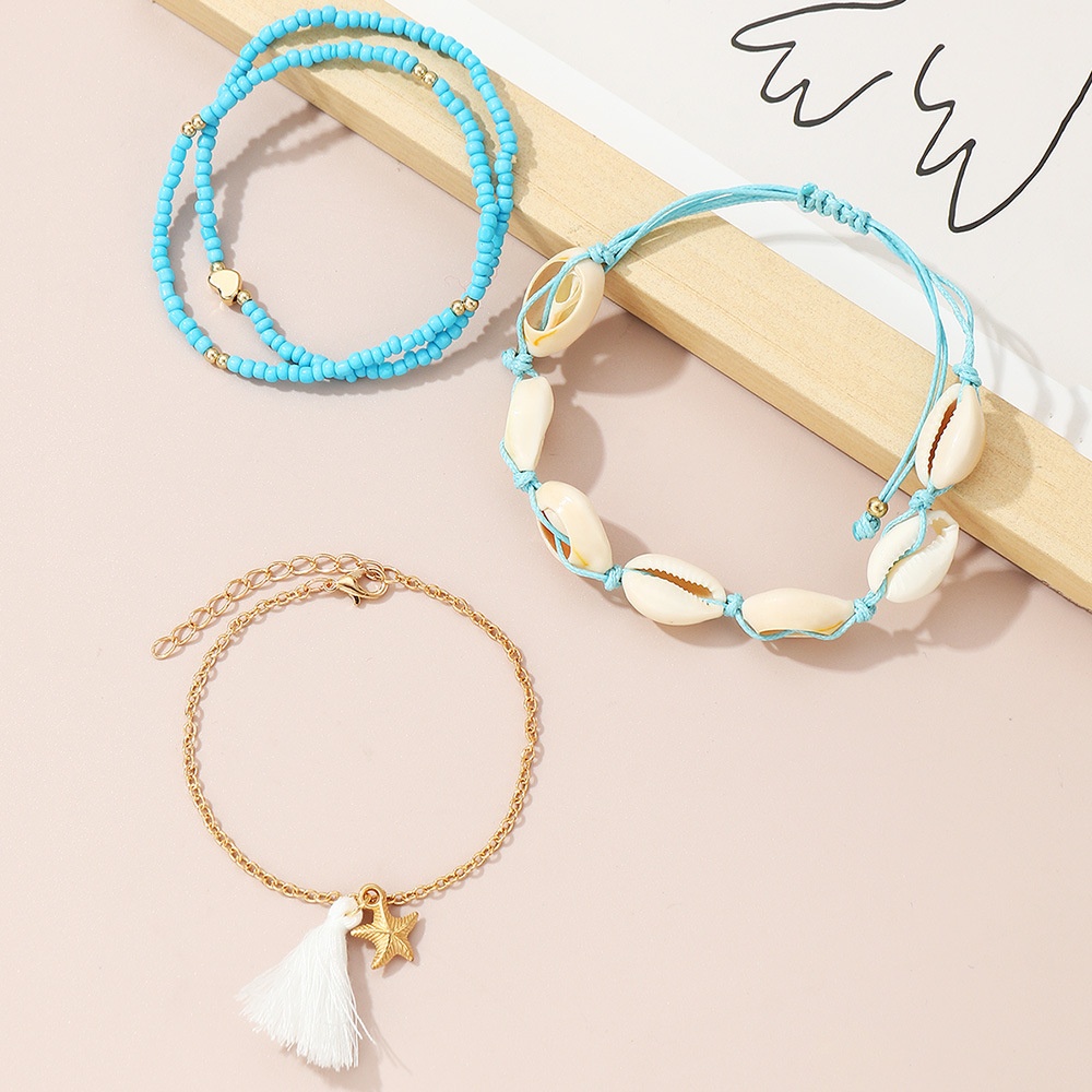 FZ0363 European And American Jewelry Bohemian Beach Rice Beads Foot Ornaments Female Fashion Multi-layer Conch Anklet