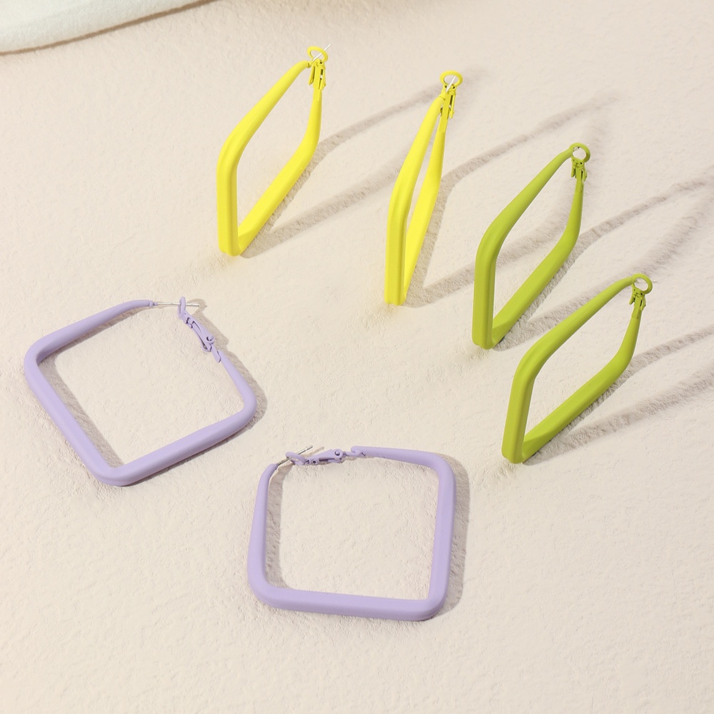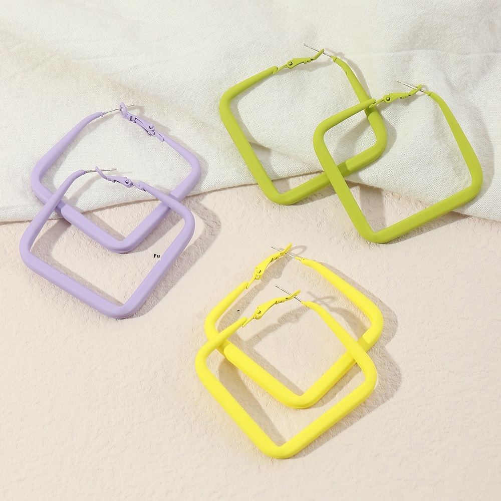 EZ3695 European And American Fashion Street Shot Geometric Earrings Personality Alloy Paint Candy Color Diamond Earrings Female