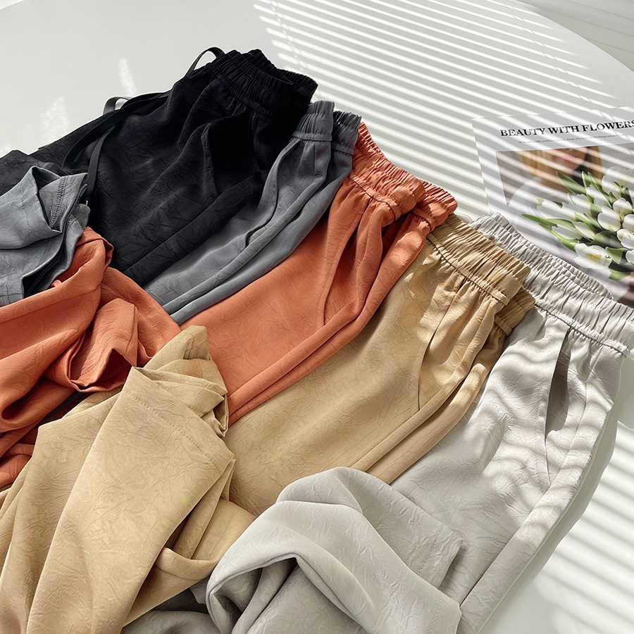 Summer Cool Chinese Style Smooth Double-sided Acetate Satin Pattern Straight Pants H9083