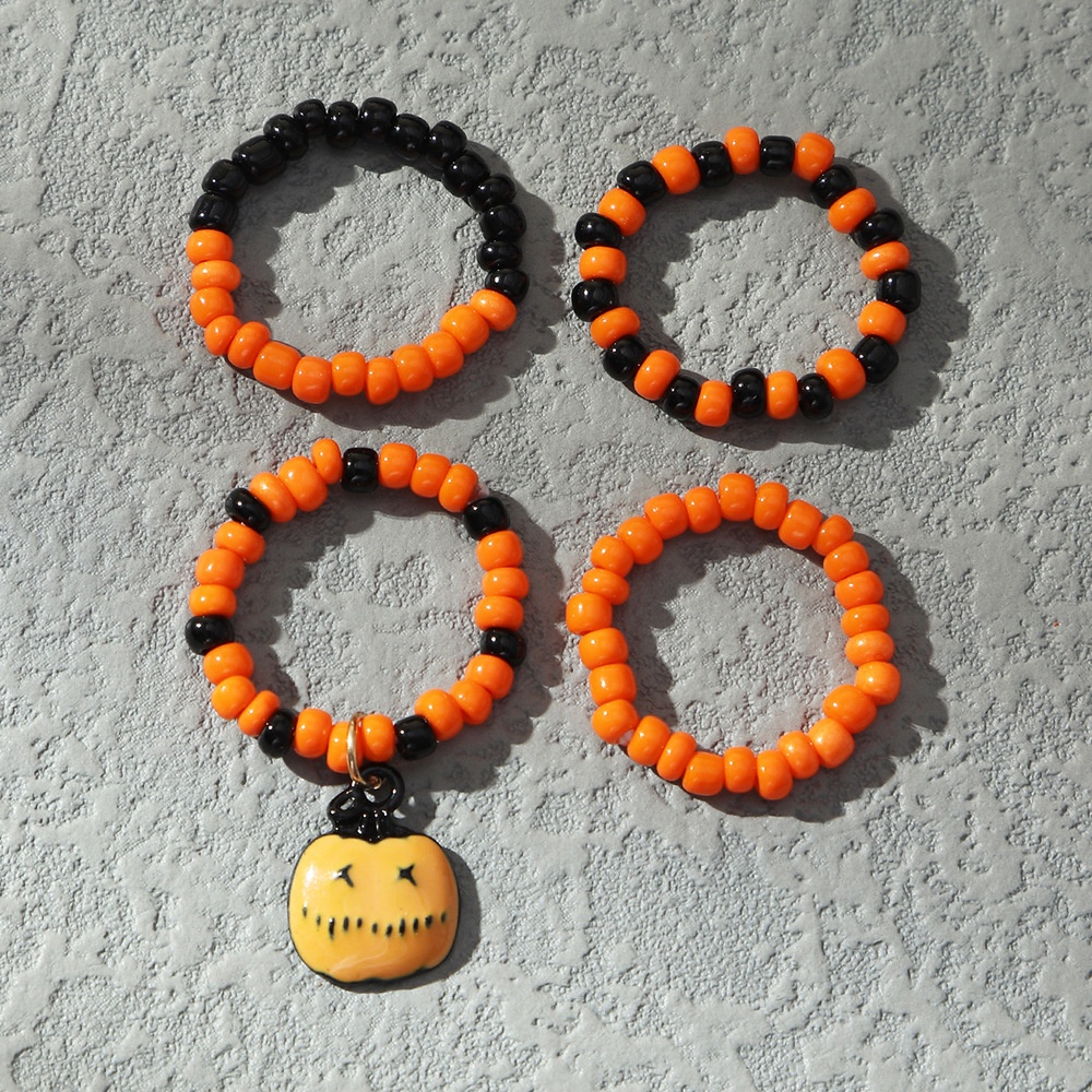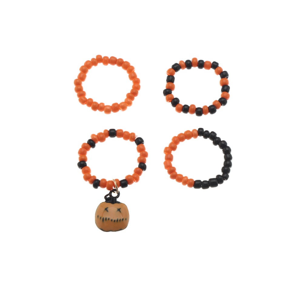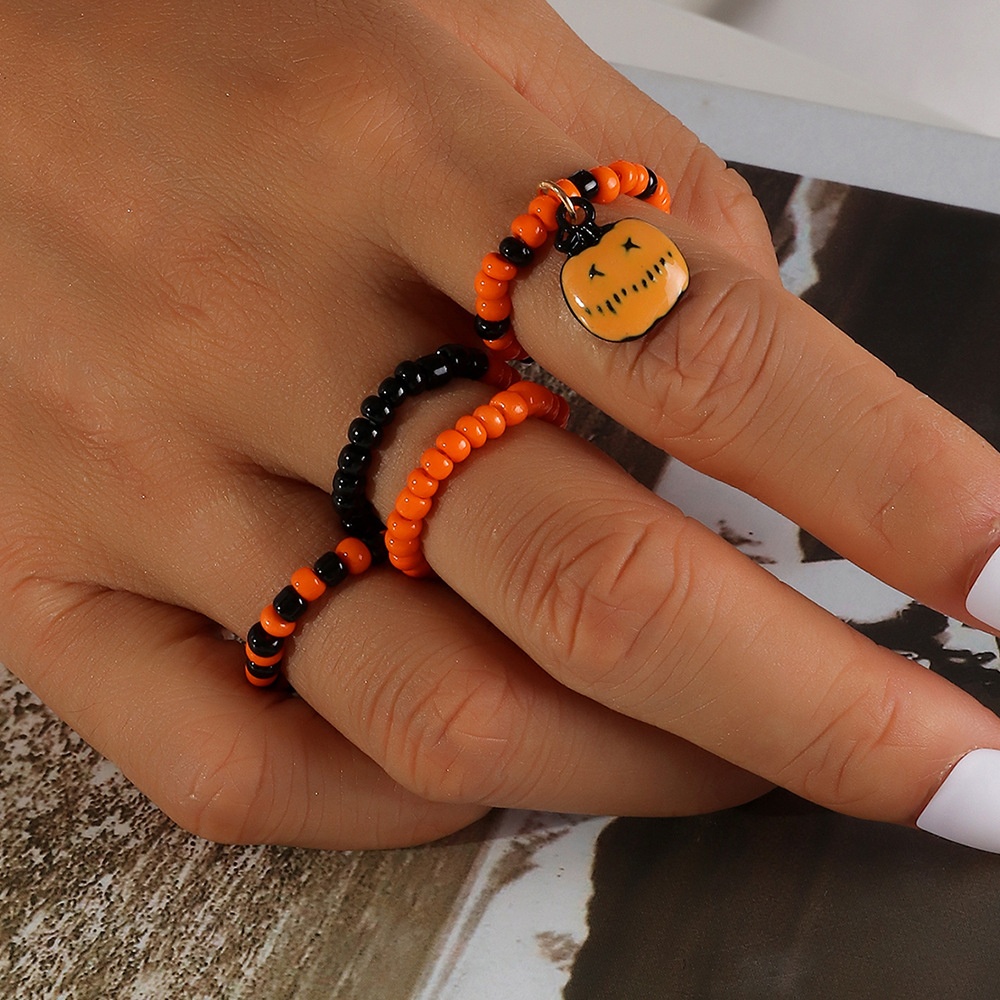 Naizhu European And American Festival Jewelry Personalized Elastic Rice Bead Ring Set Pumpkin Pendant Halloween Ring