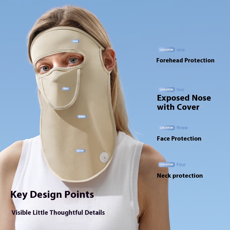 Summer Full Face Protective Mask With Exposed Nose Flip Facekini Ice Silk Anti-ultraviolet Sunscreen Mask Female Breathable Mask