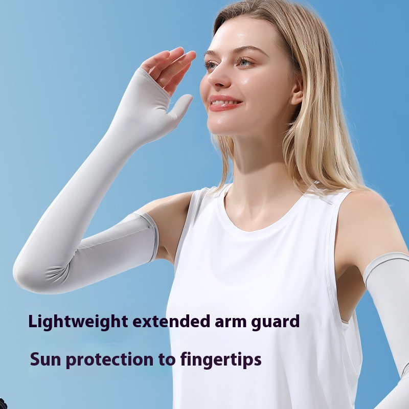 Sun Protection Ice Sleeve Hand Guard Driving Sun Protection Gloves Flip Cover Design Nylon Ice Silk Extended Arm Guard Sun Protection Sleeve With Finger