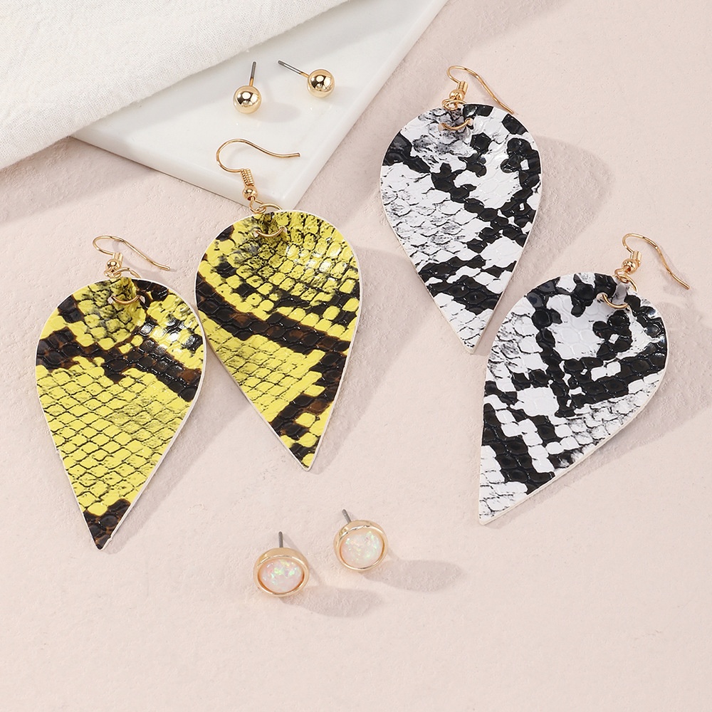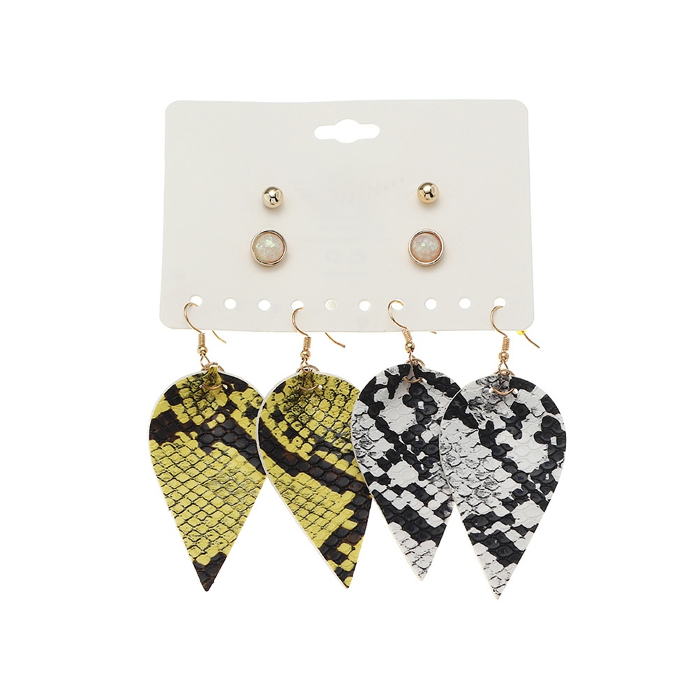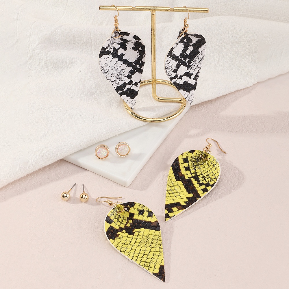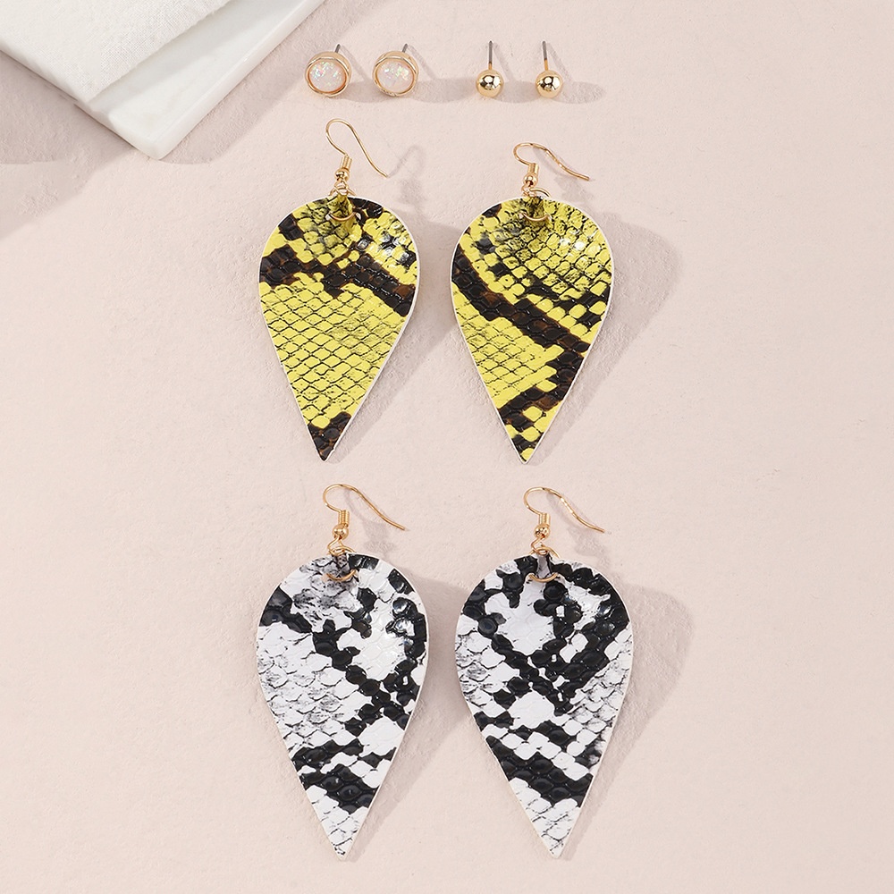 EZ2878 European And American Water Drop PULeather Earrings Retro Snakeskin Pattern Female Earrings Four-piece Earrings