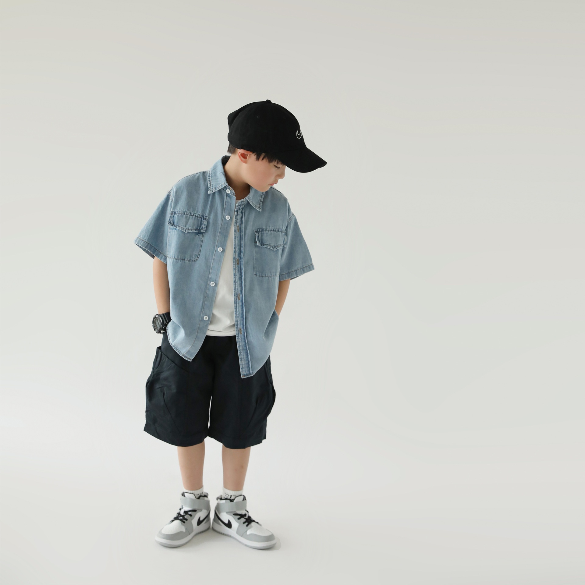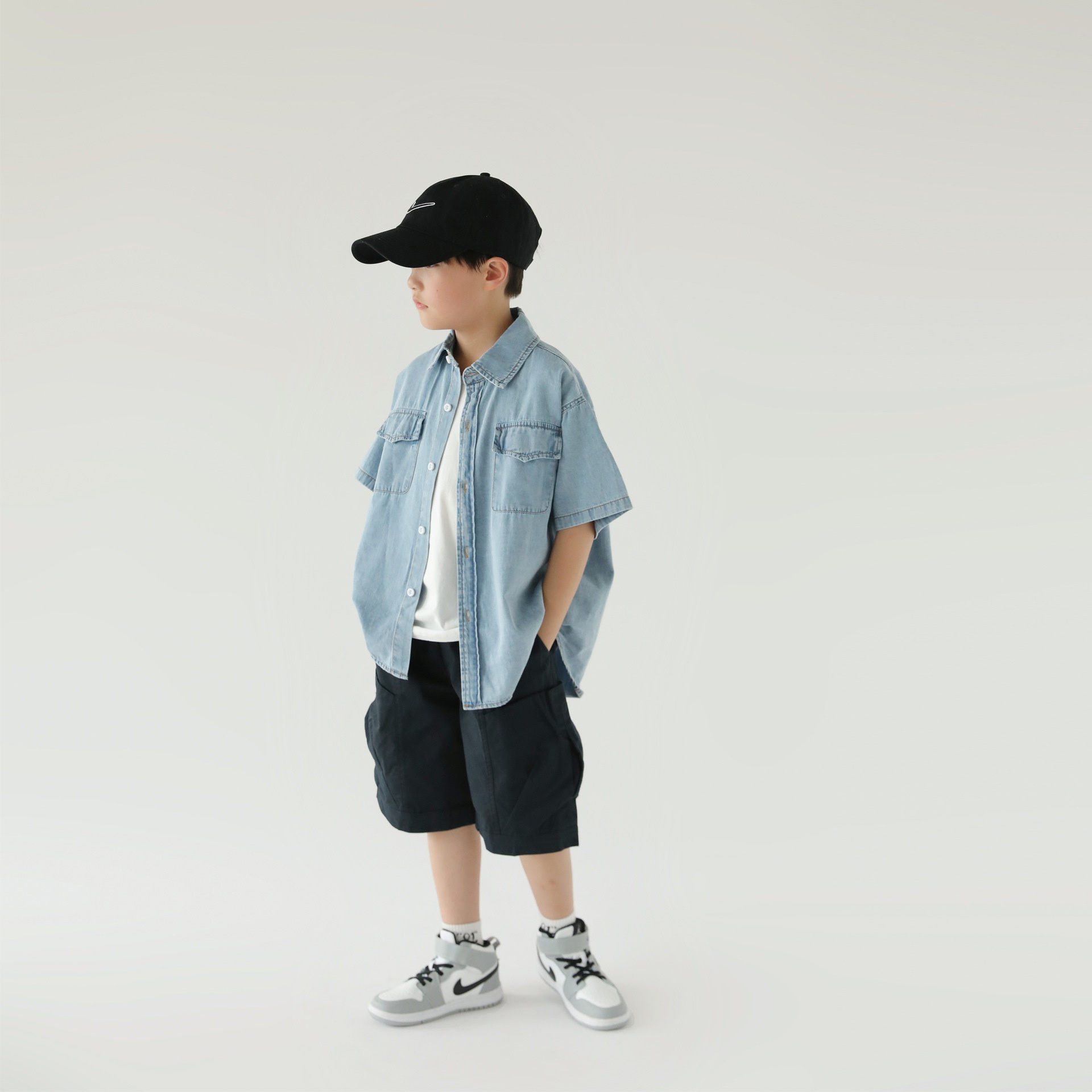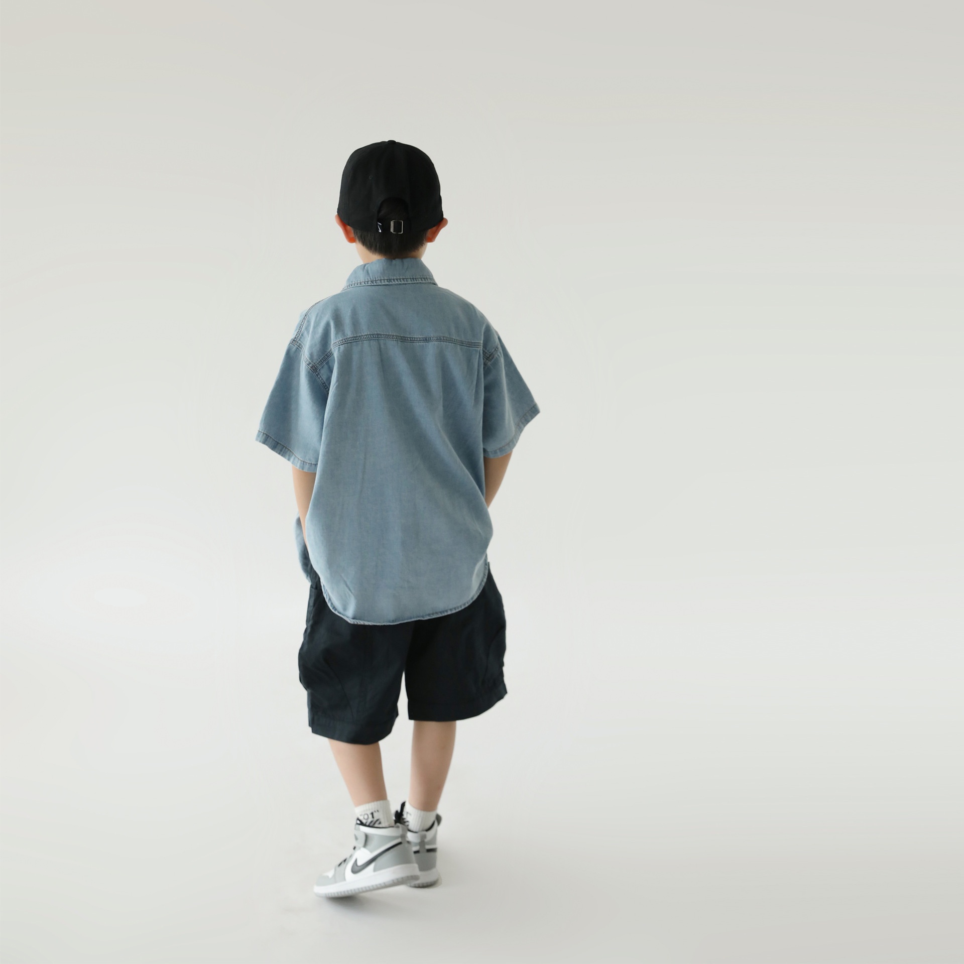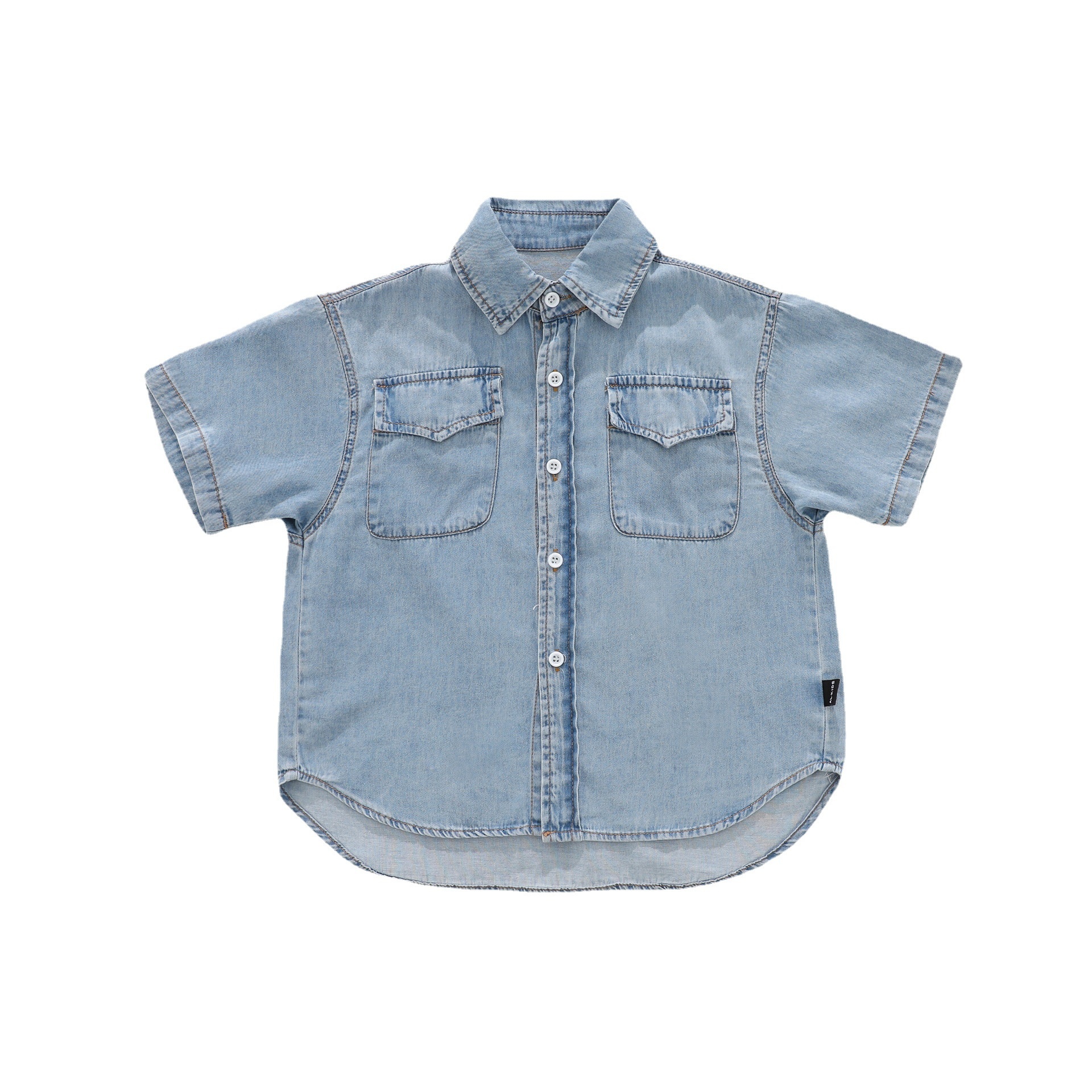 Summer Arrival Boys Casual Handsome Short-sleeved Shirt Children's Tencel Denim Stylish Shirt Light And Breathable