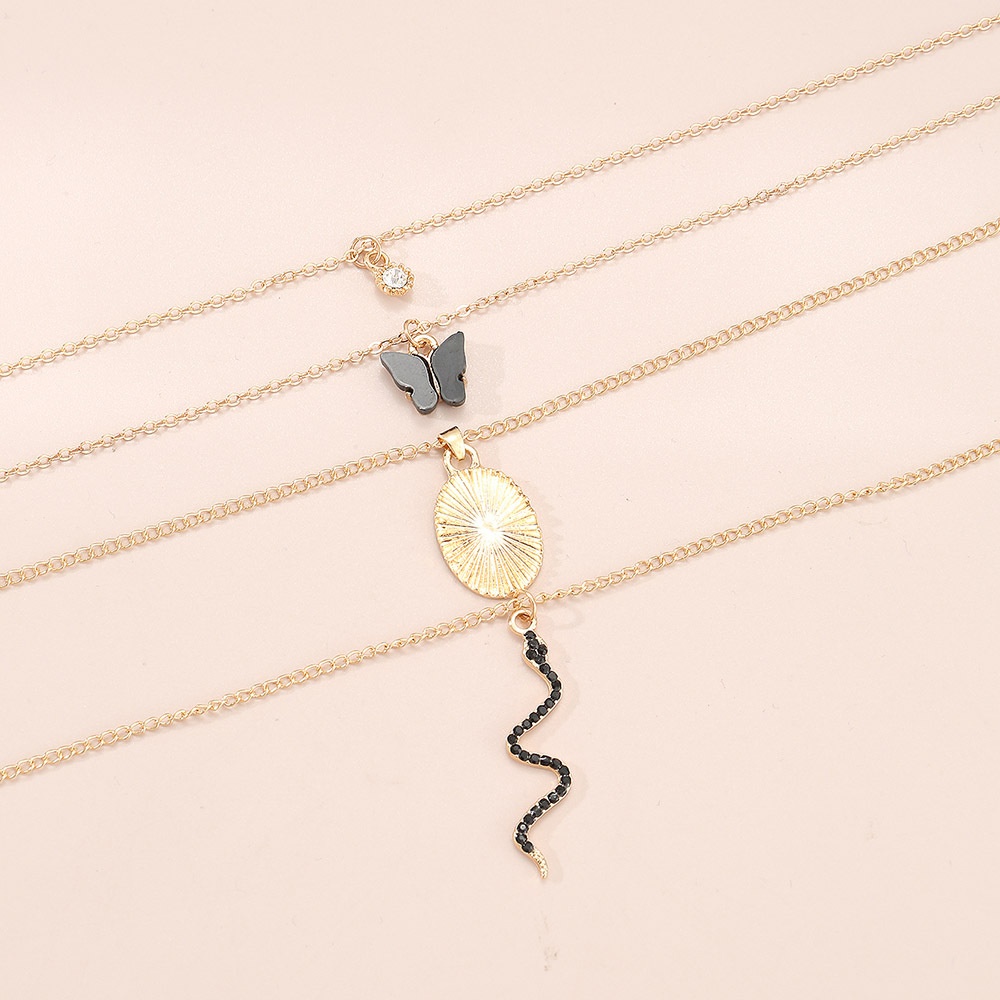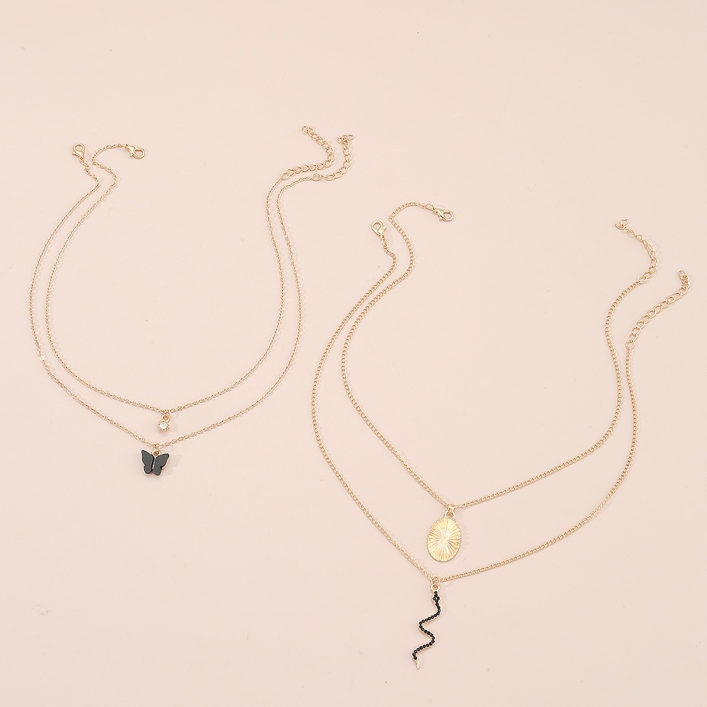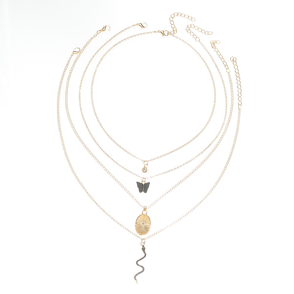NZ2850 European And American Long Snake Butterfly Metal Pendant Necklace Female Multi-layer Stacking Fashion Simple Personality Clavicle Chain Summer