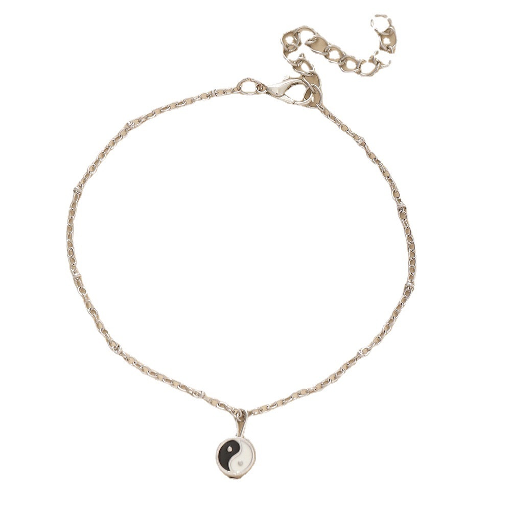 FZ0332 Ethnic Retro Yin Yang Bagua Pendant Foot Ornament Personality Simple Single Layer Bead Chain Anklet