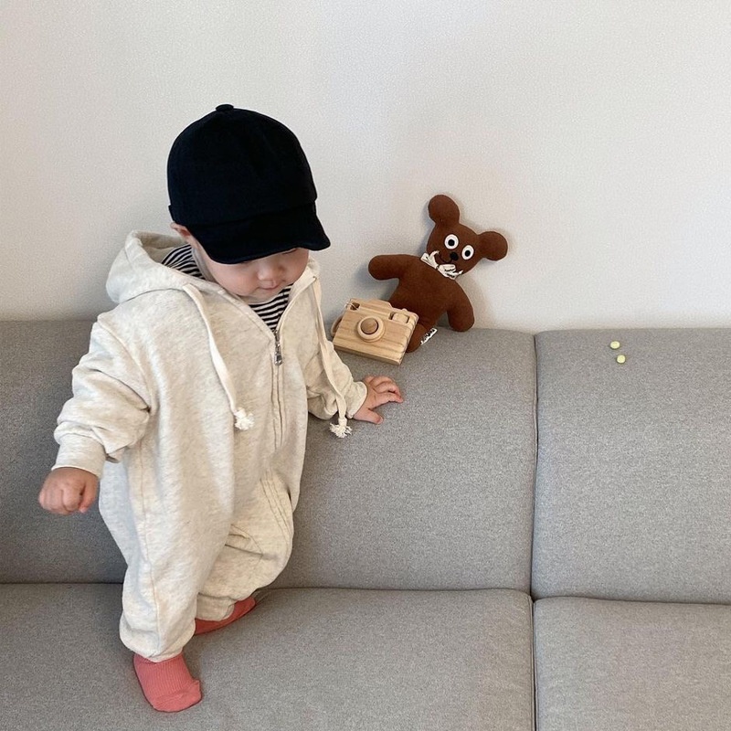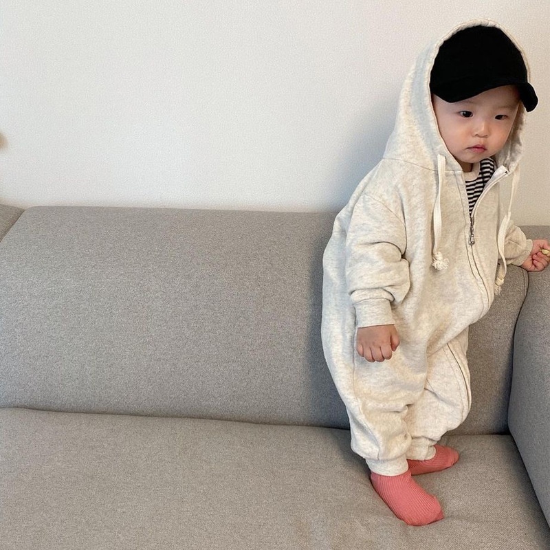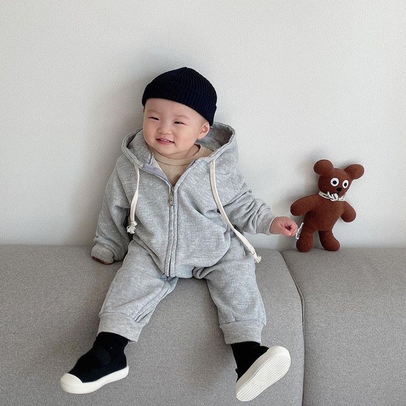 Autumn And Winter Korean Version Of The Baby Stylish Zipper Hooded Cotton Long-sleeved Jumpsuit Sweater Boys And Girls Baby Fart Crawling Clothes