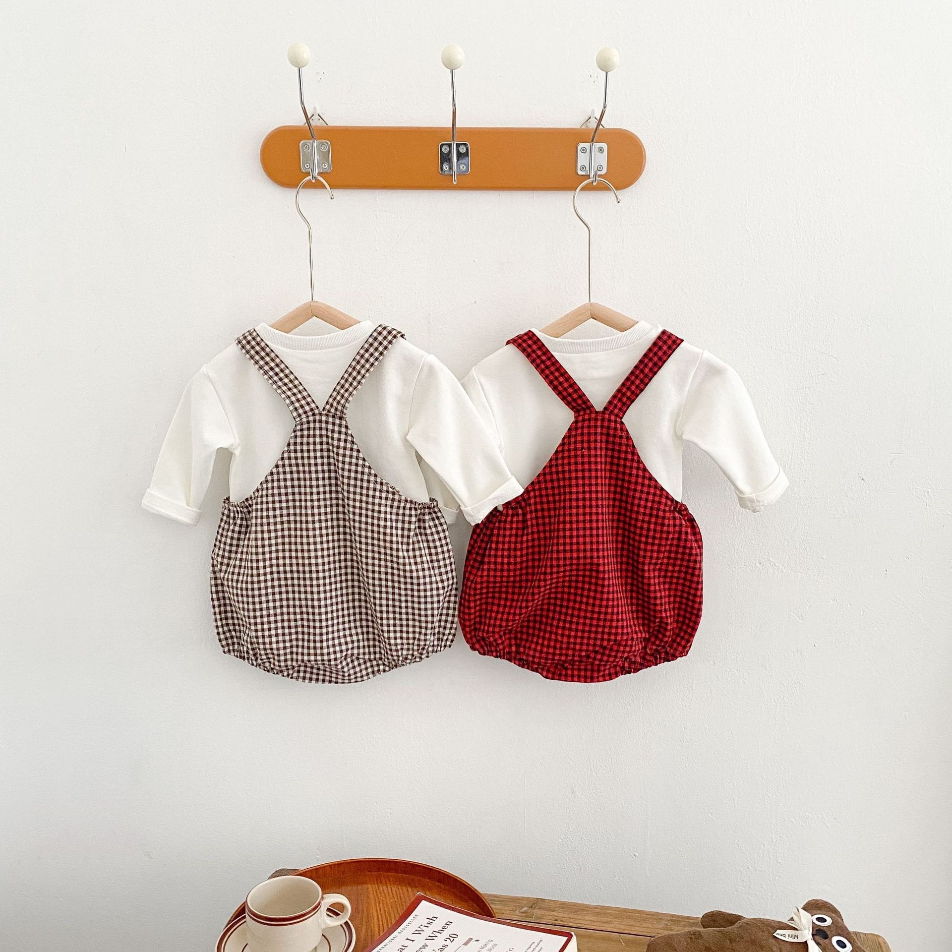 Baby Korean Version Of Full-monthborn Baby Romper Cute Net Celebrity Thin Spring And Autumn Romper Plaid Rainbow Western-style Jumpsuit